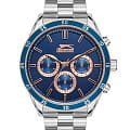 Мужские наручные часы Slazenger SL.09.2109.2.01 сочетают в себе классический дизайн и надежность современных технологий. Модель обладает круглым корпусом диаметром 45 мм, изготовленным из суперметалла, что обеспечивает высокую устойчивость к внешним воздействиям. Браслет выполнен из металла с раскладной застежкойРаскладной замокДанный вариант застежки используется только на часах с металлическим браслетом. Отличительная особенность такого крепления в том, что длина браслета становится универсальной и вы можете самостоятельно отрегулировать нужный вам размер – застежка просто двигается по браслету часов., гарантирующей комфортное ношение и безопасность. Циферблат синего цвета декорирован стрелками с люминесцентным покрытиемЛюминесцентное покрытиеПозволяет считывать показания времени в темноте. Производители наносят на стрелки, часовые индексы, безель или поверхность циферблата светонакопительный состав, дающий холодное свечение., которые обеспечивают читаемость времени даже в условиях недостаточной освещенности. БезельБезельВнешний ободок, закрепляющий стекло. В спортивных часах так называется поворотное кольцо с делениями на циферблате, выполняет роль таймера – замеряет отрезки времени на шкале. Неподвижный безель – элемент декора. Однонаправленно вращающийся безель на дайверских часах позволяет фиксировать моменты погружения и выныривания на поверхность. с IP-покрытиемIP-покрытиеМетод ионного напыления. Демонстрирует повышенную устойчивость к истиранию, окислению и химическим веществам. Под воздействием высокого давления и температуры около 1500°C молекулы металла надёжно соединяются с частицами корпуса часов.. Для защиты используется минеральное стеклоМинеральное стеклоМинеральное стекло представляет собой искусственно выращенный минерал кварца. Такое стекло отличается особой устойчивостью к повреждениям и царапинам. Уступает по некоторым качествам сапфировому стеклу., обеспечивающее прочную защиту от царапин . Часы работают на кварцевом механизме, что гарантирует точное время без необходимости подзаводки. Водонепроницаемость часов достигает 5 атмосфер (WR50), что позволяет использовать их во время плавания, однако они не предназначены для дайвинга или других водных видов спорта. Толщина модели составляет 12 мм.