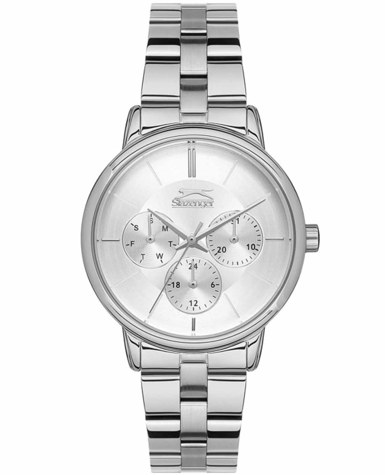 Эти элегантные женские часы Slazenger SL.09.2145.4.01 идеально подойдут для тех, кто ценит стиль и функциональность. Произведенные в Англии, они оснащены надежным кварцевым механизмом, который обеспечивает точное время. Корпус и браслет часов выполнены из металла, придающего изделию современный и изысканный вид. Минеральное стеклоМинеральное стеклоМинеральное стекло представляет собой искусственно выращенный минерал кварца. Такое стекло отличается особой устойчивостью к повреждениям и царапинам. Уступает по некоторым качествам сапфировому стеклу. защищает серебристый циферблат от царапин и повреждений, а водозащита уровня WR 30 позволяет использовать часы в условиях повышенной влажности.  Диаметр корпуса составляет 35 мм, а толщина — 9 мм, что делает их аккуратными и утонченными, идеально подходящими для женского запястья. Ширина браслета равна 16 мм, и он оснащен раскладной застёжкойРаскладная застёжкаТакой тип застёжки используется только на браслетах из металла. Она никогда не раскрывается полностью, происходит разделение на 2 и более частей. Раскладывающая застёжка снизит вероятность потери часов к минимуму. для удобства ношения. Часы оснащены дополнительными функциями: на малых циферблатах отображаются дата и день недели, а также текущее время в 24-часовом формате, что добавляет удобства в использовании. Эти часы станут отличным дополнением к любому образу, подчеркивая вашу индивидуальность и утонченность.