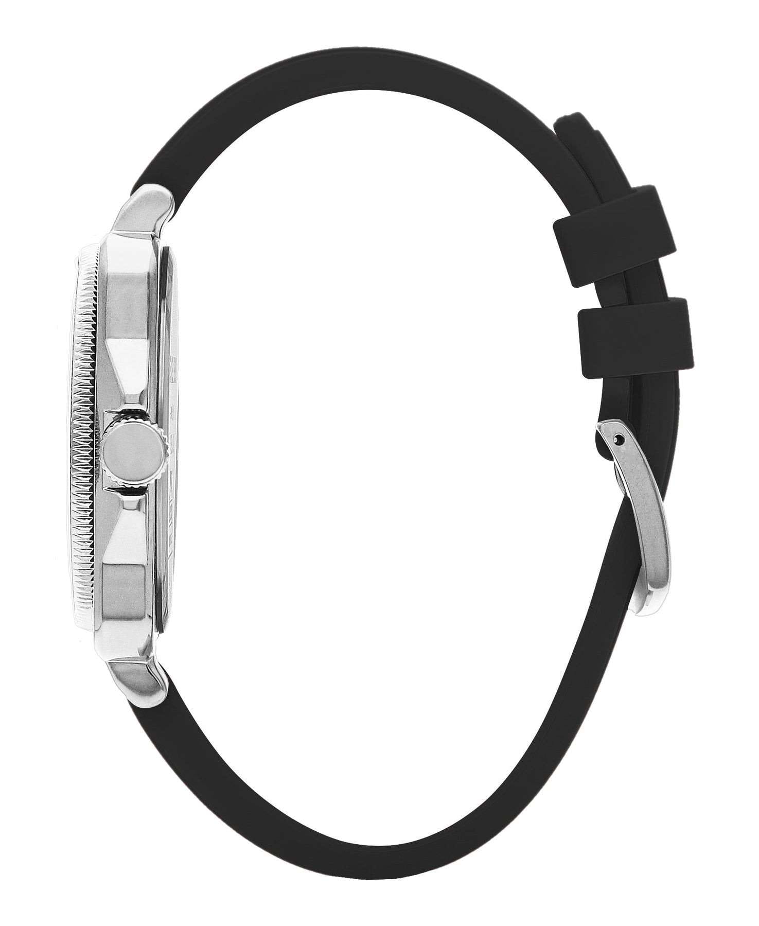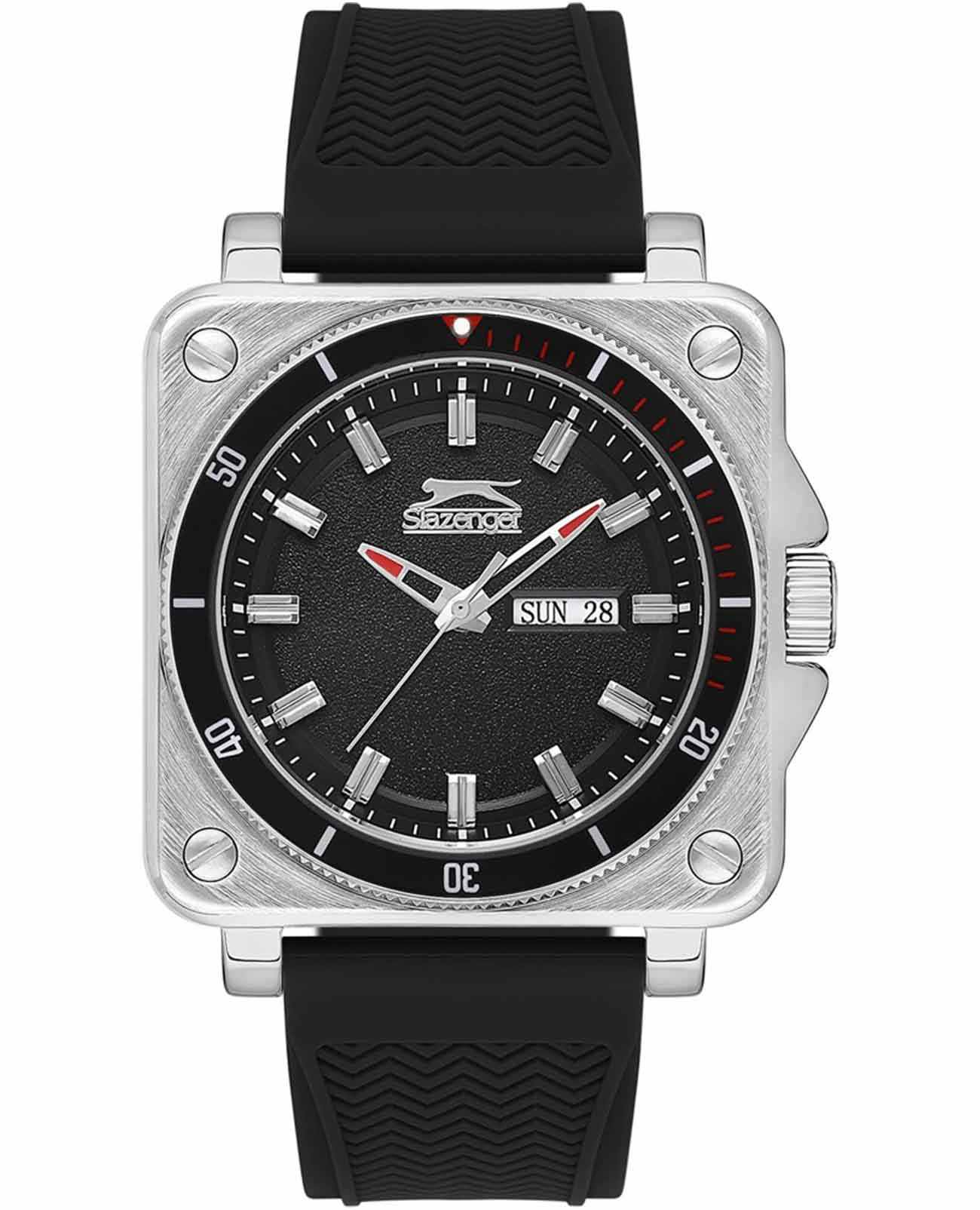 Часы Slazenger SL.09.2233.1.01 — это современная модель, сочетающая стиль и практичность. Корпус квадратной формы выполнен из прочного металла, а круглый черный циферблат придает дизайну особую выразительность. На вращающийся безельБезельВнешний ободок, закрепляющий стекло. В спортивных часах так называется поворотное кольцо с делениями на циферблате, выполняет роль таймера – замеряет отрезки времени на шкале. Неподвижный безель – элемент декора. Однонаправленно вращающийся безель на дайверских часах позволяет фиксировать моменты погружения и выныривания на поверхность. нанесено черное IP-покрытиеIP-покрытиеМетод ионного напыления. Демонстрирует повышенную устойчивость к истиранию, окислению и химическим веществам. Под воздействием высокого давления и температуры около 1500°C молекулы металла надёжно соединяются с частицами корпуса часов.. Резиновый черный ремешок с классической застежкой обеспечивает удобство при повседневном ношении. Модель оснащена кварцевым механизмом, минеральное стеклоМинеральное стеклоМинеральное стекло представляет собой искусственно выращенный минерал кварца. Такое стекло отличается особой устойчивостью к повреждениям и царапинам. Уступает по некоторым качествам сапфировому стеклу., защищающим от случайных повреждений, и водозащитой уровня WR 50, позволяющей не бояться контакта с водой в повседневных ситуациях. На циферблате расположены окошки даты и дня недели. Для удобства использования в темное время суток предусмотрено люминесцентное покрытиеЛюминесцентное покрытиеПозволяет считывать показания времени в темноте. Производители наносят на стрелки, часовые индексы, безель или поверхность циферблата светонакопительный состав, дающий холодное свечение. стрелок. Заводная головка дополнительно защищена от случайных нажатий. Габариты корпуса составляют 43 на 43 мм, толщина — 11 мм.