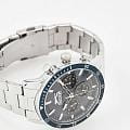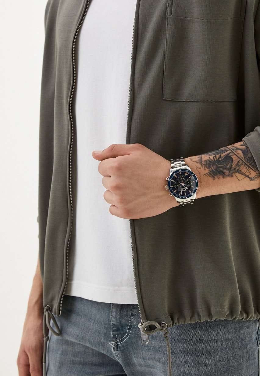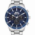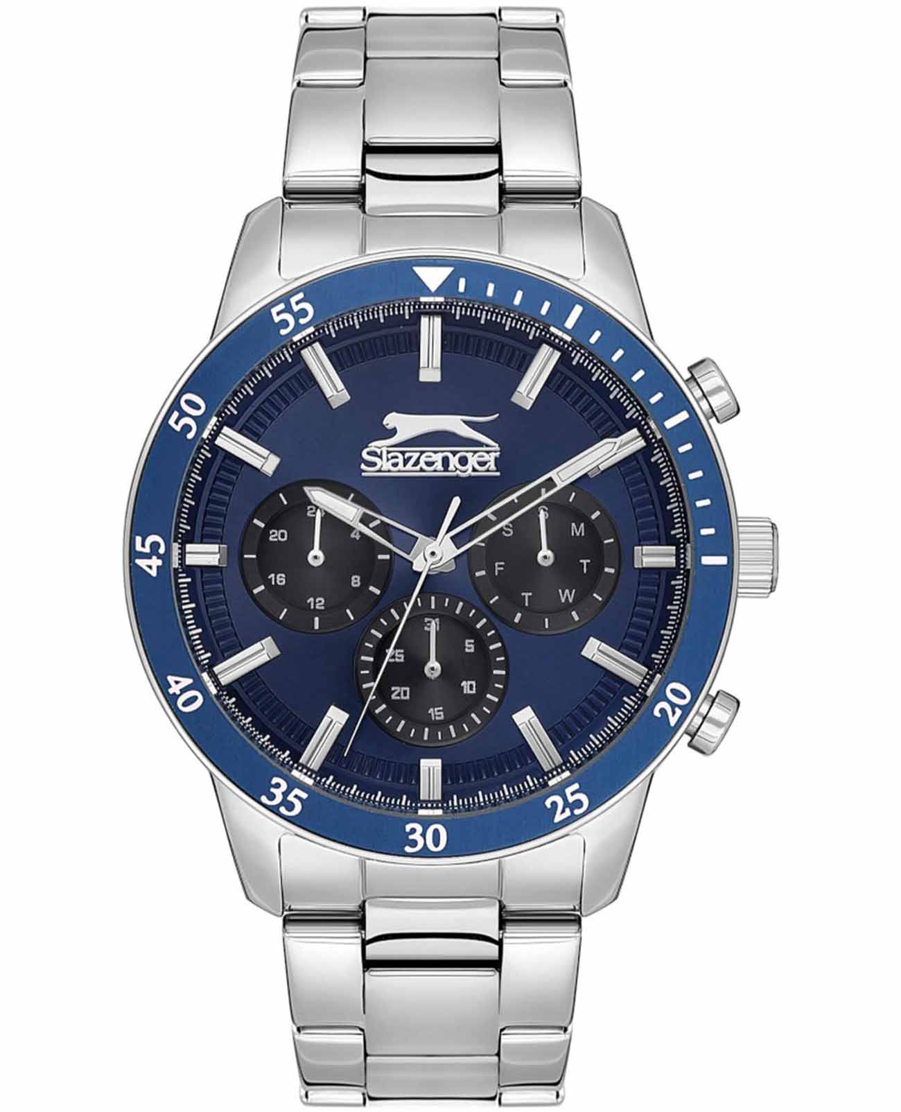 Часы Slazenger SL.09.2260.2.01 сочетают в себе выразительный дизайн и практичность, делая их отличным выбором для современного мужчины. Корпус и браслет выполнены из суперметалла — прочного сплава на основе меди с низким содержанием цинка и никеля, что обеспечивает долговечность изделия. На безельБезельВнешний ободок, закрепляющий стекло. В спортивных часах так называется поворотное кольцо с делениями на циферблате, выполняет роль таймера – замеряет отрезки времени на шкале. Неподвижный безель – элемент декора. Однонаправленно вращающийся безель на дайверских часах позволяет фиксировать моменты погружения и выныривания на поверхность. нанесено синее IP-покрытиеIP-покрытиеМетод ионного напыления. Демонстрирует повышенную устойчивость к истиранию, окислению и химическим веществам. Под воздействием высокого давления и температуры около 1500°C молекулы металла надёжно соединяются с частицами корпуса часов., что придает аксессуару утончённый и универсальный внешний вид. Модель оснащена точным кварцевым механизмом, защищённым минеральным стекломМинеральное стеклоМинеральное стекло представляет собой искусственно выращенный минерал кварца. Такое стекло отличается особой устойчивостью к повреждениям и царапинам. Уступает по некоторым качествам сапфировому стеклу.. На синем циферблате размещены дополнительные индикаторы: 24-часовой формат времени, дата и день недели. Класс водозащиты 5 бар позволяет не беспокоиться о брызгах и дожде. Диаметр корпуса составляет 45 мм, толщина — 12 мм, что придаёт часам солидный и современный вид. Стрелки с люминесцентным покрытиемЛюминесцентное покрытиеПозволяет считывать показания времени в темноте. Производители наносят на стрелки, часовые индексы, безель или поверхность циферблата светонакопительный состав, дающий холодное свечение. удобно подсвечиваются в темноте после зарядки на свету. Стальной браслет с раскладной застёжкойРаскладная застёжкаТакой тип застёжки используется только на браслетах из металла. Она никогда не раскрывается полностью, происходит разделение на 2 и более частей. Раскладывающая застёжка снизит вероятность потери часов к минимуму. обеспечивает комфортную посадку. Модель станет надёжным спутником как на каждый день, так и для особых случаев, а также превосходно подойдёт в качестве подарка.