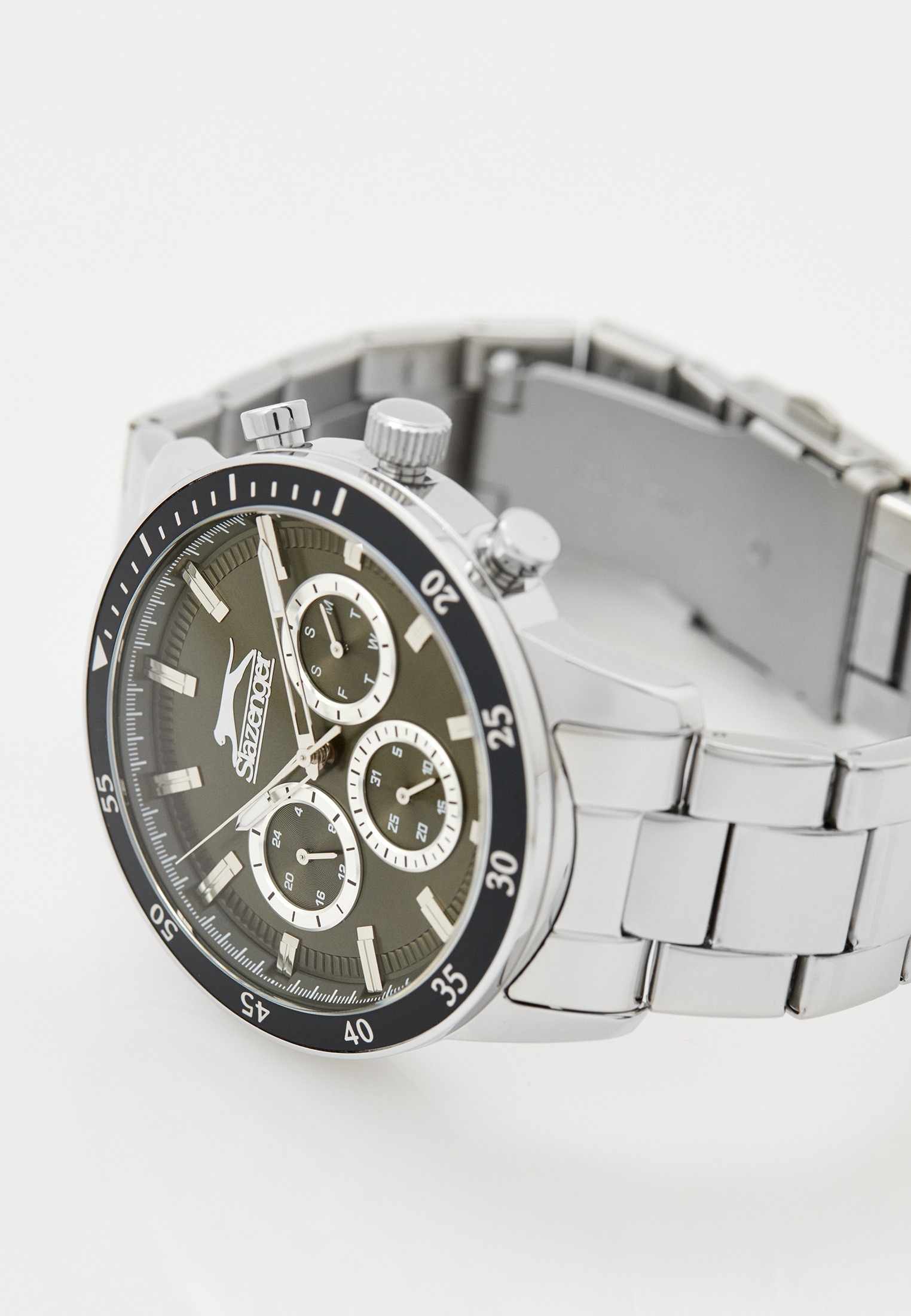 Часы Slazenger SL.09.2260.2.04 сочетают в себе выразительный дизайн и практичность, делая их отличным выбором для современного мужчины. Корпус и браслет выполнены из суперметалла — прочного сплава на основе меди с низким содержанием цинка и никеля, что обеспечивает долговечность изделия. На безельБезельВнешний ободок, закрепляющий стекло. В спортивных часах так называется поворотное кольцо с делениями на циферблате, выполняет роль таймера – замеряет отрезки времени на шкале. Неподвижный безель – элемент декора. Однонаправленно вращающийся безель на дайверских часах позволяет фиксировать моменты погружения и выныривания на поверхность. нанесено черное IP-покрытиеIP-покрытиеМетод ионного напыления. Демонстрирует повышенную устойчивость к истиранию, окислению и химическим веществам. Под воздействием высокого давления и температуры около 1500°C молекулы металла надёжно соединяются с частицами корпуса часов., что придает аксессуару утончённый и универсальный внешний вид. Модель оснащена точным кварцевым механизмом, защищённым минеральным стекломМинеральное стеклоМинеральное стекло представляет собой искусственно выращенный минерал кварца. Такое стекло отличается особой устойчивостью к повреждениям и царапинам. Уступает по некоторым качествам сапфировому стеклу.. На черном циферблате размещены дополнительные индикаторы: 24-часовой формат времени, дата и день недели. Класс водозащиты 5 бар позволяет не беспокоиться о брызгах и дожде. Диаметр корпуса составляет 45 мм, толщина — 12 мм, что придаёт часам солидный и современный вид. Стрелки с люминесцентным покрытиемЛюминесцентное покрытиеПозволяет считывать показания времени в темноте. Производители наносят на стрелки, часовые индексы, безель или поверхность циферблата светонакопительный состав, дающий холодное свечение. удобно подсвечиваются в темноте после зарядки на свету. Стальной браслет с раскладной застёжкойРаскладная застёжкаТакой тип застёжки используется только на браслетах из металла. Она никогда не раскрывается полностью, происходит разделение на 2 и более частей. Раскладывающая застёжка снизит вероятность потери часов к минимуму. обеспечивает комфортную посадку. Модель станет надёжным спутником как на каждый день, так и для особых случаев, а также превосходно подойдёт в качестве подарка. Гарантия от производителя — 12 месяцев.