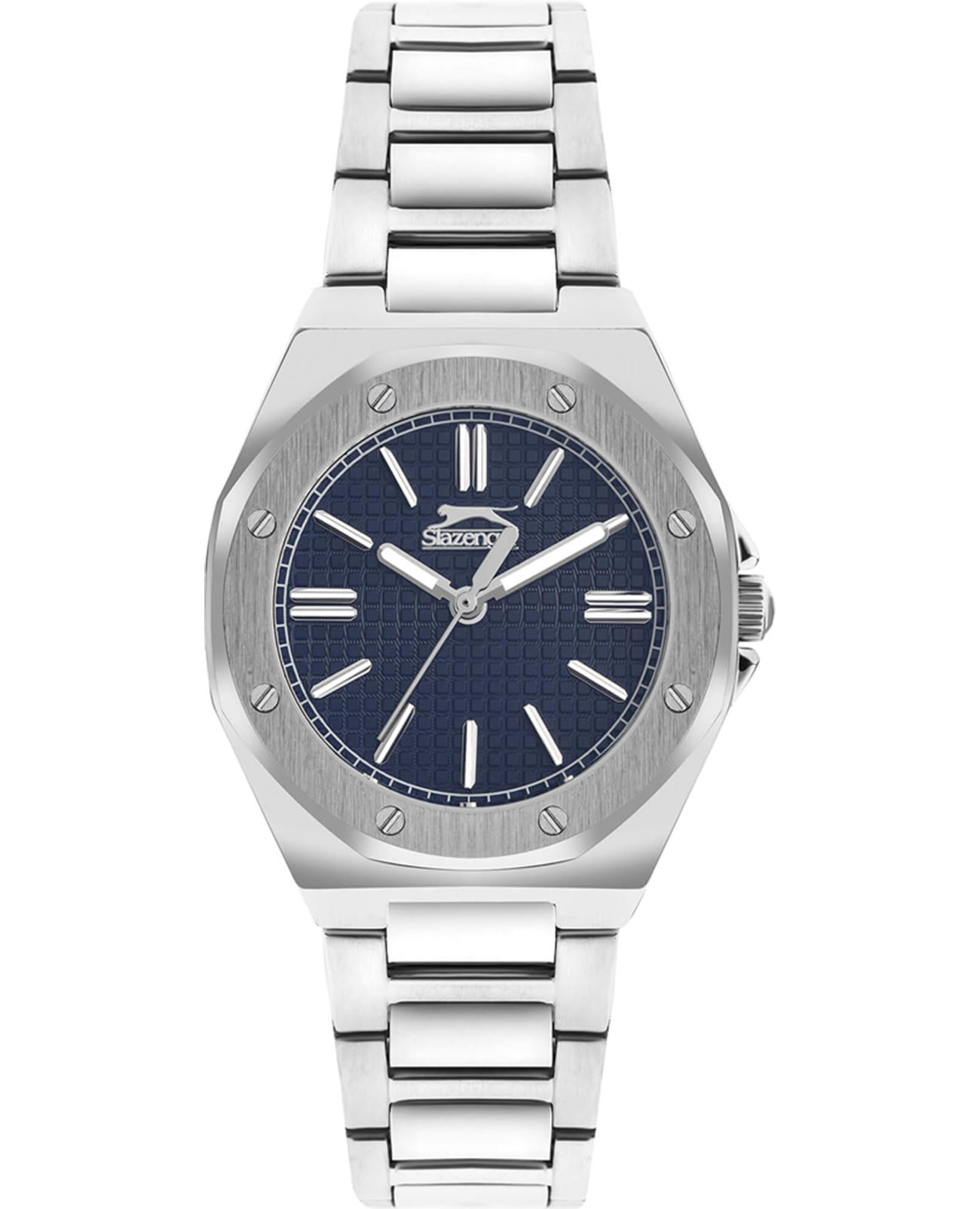 Женские кварцевые часы Slazenger SL.09.2306.3.05 — это элегантный и стильный аксессуар, идеально дополняющий любой образ. Корпус и браслет выполнены из суперметалла, защищён минеральным стекломМинеральное стеклоМинеральное стекло представляет собой искусственно выращенный минерал кварца. Такое стекло отличается особой устойчивостью к повреждениям и царапинам. Уступает по некоторым качествам сапфировому стеклу.. Циферблат синего цвета оформлен в классическом стиле, стрелки оснащены люминесцентным покрытиемЛюминесцентное покрытиеПозволяет считывать показания времени в темноте. Производители наносят на стрелки, часовые индексы, безель или поверхность циферблата светонакопительный состав, дающий холодное свечение., обеспечивающим хорошую читаемость в темноте. Заводная головка снабжена защитой для повышения надёжности. Браслет из суперметалла фиксируется на раскладной застёжкеРаскладная застёжкаТакой тип застёжки используется только на браслетах из металла. Она никогда не раскрывается полностью, происходит разделение на 2 и более частей. Раскладывающая застёжка снизит вероятность потери часов к минимуму., обеспечивая удобство и безопасность ношения. Водонепроницаемость 30 м позволяет использовать часы в повседневных условиях, защищая от случайных брызг и капель дождя. Модель сочетает в себе лёгкость, прочность и изысканный внешний вид.