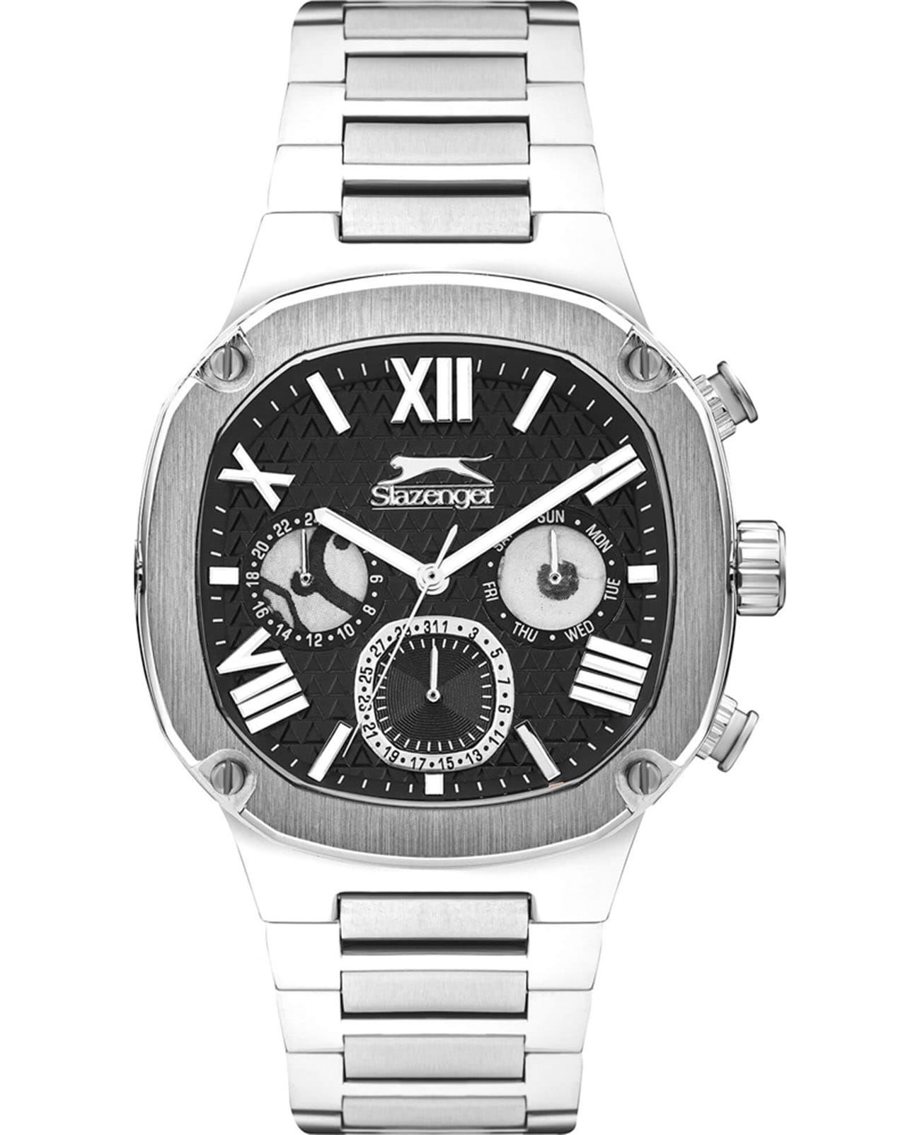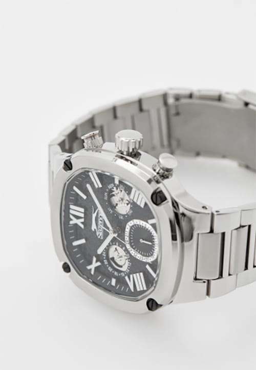 Мужские кварцевые часы Slazenger SL.09.2320.2.01 — это выразительный и функциональный аксессуар, сочетающий стиль, прочность и насыщенную комплектацию. Корпус и браслет выполнены из суперметалла, а циферблат частично скелетонизирован и оформлен в чёрных тонах, что позволяет наблюдать за работой механизма. Циферблат защищён минеральным стекломМинеральное стеклоМинеральное стекло представляет собой искусственно выращенный минерал кварца. Такое стекло отличается особой устойчивостью к повреждениям и царапинам. Уступает по некоторым качествам сапфировому стеклу. и дополнен вынесенными малыми циферблатами для индикации дня недели, даты и времени в 24-часовом формате. Стрелки и метки оснащены люминесцентным покрытиемЛюминесцентное покрытиеПозволяет считывать показания времени в темноте. Производители наносят на стрелки, часовые индексы, безель или поверхность циферблата светонакопительный состав, дающий холодное свечение., обеспечивающим хорошую читаемость в темноте. Завинчивающаяся задняя крышка повышает надёжность конструкции. Браслет из суперметалла фиксируется на раскладной застёжкеРаскладная застёжкаТакой тип застёжки используется только на браслетах из металла. Она никогда не раскрывается полностью, происходит разделение на 2 и более частей. Раскладывающая застёжка снизит вероятность потери часов к минимуму., обеспечивая удобство и безопасность ношения. Водонепроницаемость 50 м позволяет использовать часы в повседневных условиях, защищая от случайных брызг и капель дождя. Модель подчёркивает индивидуальность владельца и идеально подходит как для повседневного, так и для делового образа.