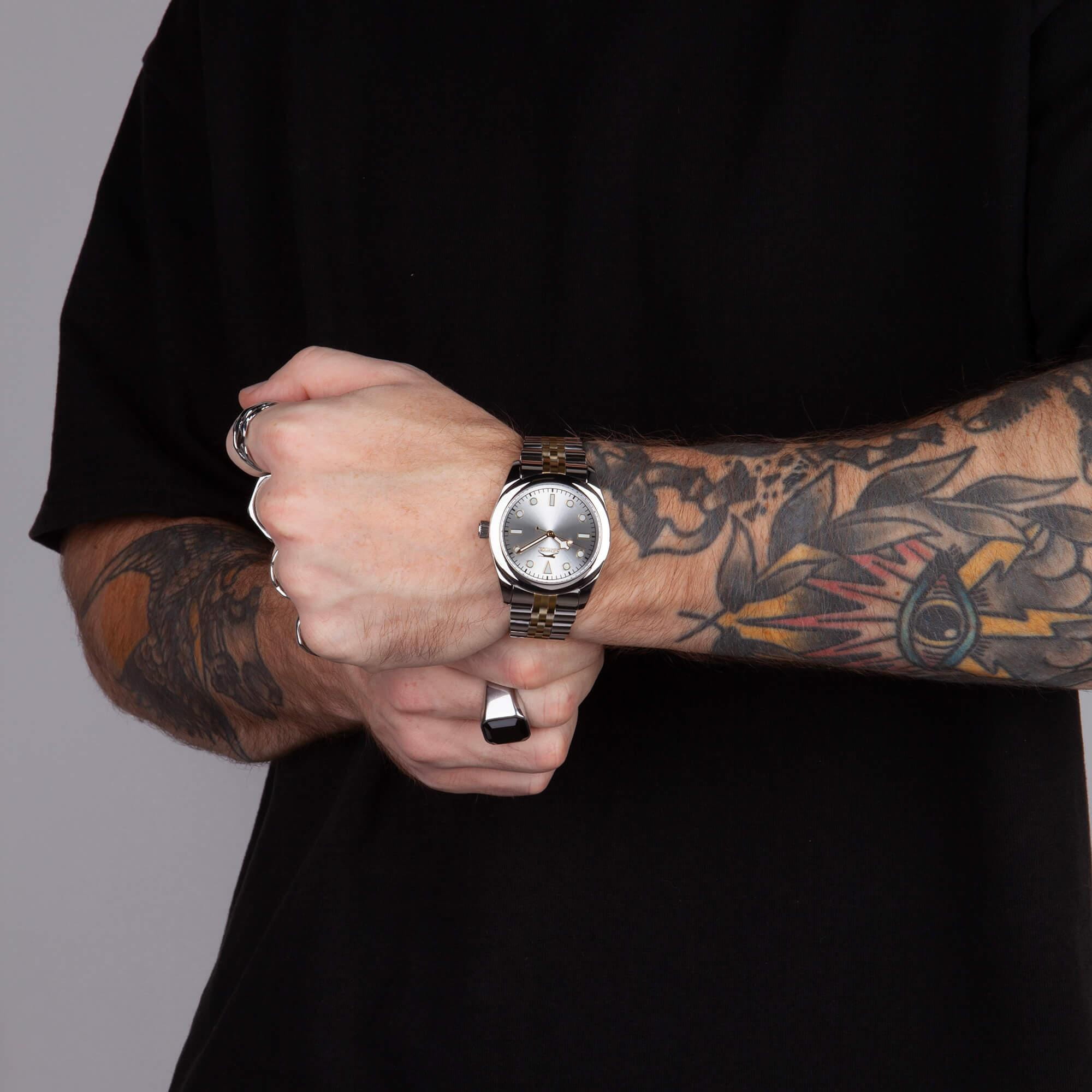Мужские кварцевые часы Slazenger SL.09.2354.1.04 – идеальное сочетание классического дизайна и современных технологий, созданное для уверенных в себе мужчин. Корпус выполнен из суперметалла серебристого цвета, диаметром 41 мм и толщиной 12 мм, подчёркивает надежность модели и делает их идеальным аксессуаром для любой ситуации – будь то деловая встреча или повседневные выходы. Циферблат надёжно защищён минеральным стекломМинеральное стеклоМинеральное стекло представляет собой искусственно выращенный минерал кварца. Такое стекло отличается особой устойчивостью к повреждениям и царапинам. Уступает по некоторым качествам сапфировому стеклу., которое устойчиво к механическим повреждениям и сохраняет кристальную прозрачность. Браслет из суперметалла с частичным IP-покрытиемIP-покрытиеМетод ионного напыления. Демонстрирует повышенную устойчивость к истиранию, окислению и химическим веществам. Под воздействием высокого давления и температуры около 1500°C молекулы металла надёжно соединяются с частицами корпуса часов. удобно облегает запястье и фиксируется с помощью раскладной застёжкиРаскладная застёжкаТакой тип застёжки используется только на браслетах из металла. Она никогда не раскрывается полностью, происходит разделение на 2 и более частей. Раскладывающая застёжка снизит вероятность потери часов к минимуму., обеспечивая надёжность и комфорт в повседневном ношении. Стрелки и метки покрыты люминесцентным покрытиемЛюминесцентное покрытиеПозволяет считывать показания времени в темноте. Производители наносят на стрелки, часовые индексы, безель или поверхность циферблата светонакопительный состав, дающий холодное свечение., обеспечивающим отличную читаемость в темноте. Эти часы станут не просто аксессуаром, а надежным спутником в любой ситуации, подчеркивая ваш безупречный вкус и деловой стиль. Водозащита до 50 метров позволит защитить корпус от случайных брызг или капель дождя.