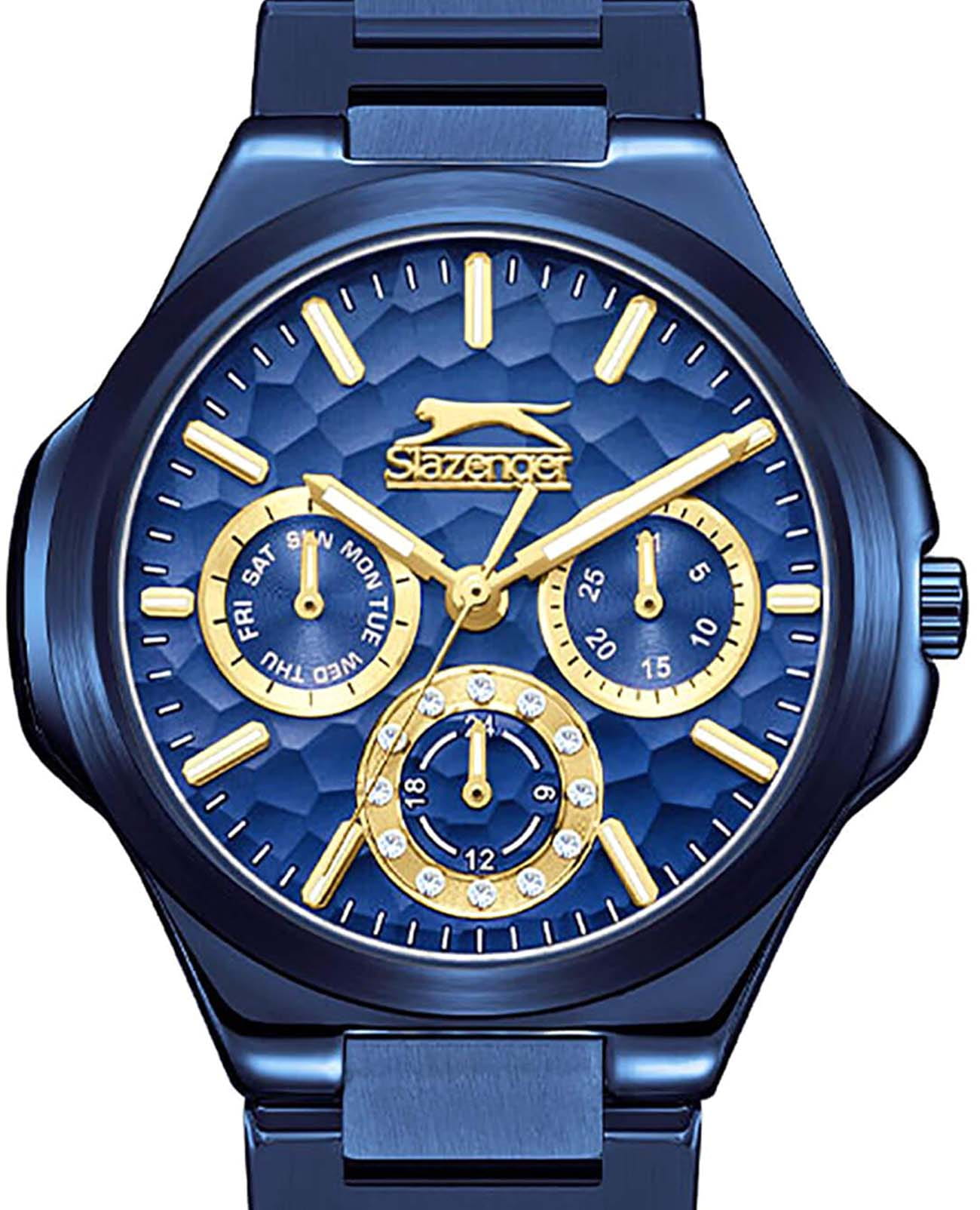 Женские кварцевые часы Slazenger SL.09.2365.4.04 – это сочетание элегантности, современного стиля и надёжности. Изящный корпус из суперметалла с IP-покрытиемIP-покрытиеМетод ионного напыления. Демонстрирует повышенную устойчивость к истиранию, окислению и химическим веществам. Под воздействием высокого давления и температуры около 1500°C молекулы металла надёжно соединяются с частицами корпуса часов. синего цвета, диаметром 33 мм и толщиной 10 мм, подчёркивает утончённость модели и делает их идеальным аксессуаром для любой ситуации – будь то деловая встреча, романтический вечер или повседневные выходы. Циферблат надёжно защищён минеральным стекломМинеральное стеклоМинеральное стекло представляет собой искусственно выращенный минерал кварца. Такое стекло отличается особой устойчивостью к повреждениям и царапинам. Уступает по некоторым качествам сапфировому стеклу., которое устойчиво к механическим повреждениям и сохраняет кристальную прозрачность. Браслет из суперметалла с IP-покрытиемIP-покрытиеМетод ионного напыления. Демонстрирует повышенную устойчивость к истиранию, окислению и химическим веществам. Под воздействием высокого давления и температуры около 1500°C молекулы металла надёжно соединяются с частицами корпуса часов. удобно облегает запястье и фиксируется с помощью раскладной застёжкиРаскладная застёжкаТакой тип застёжки используется только на браслетах из металла. Она никогда не раскрывается полностью, происходит разделение на 2 и более частей. Раскладывающая застёжка снизит вероятность потери часов к минимуму., обеспечивая надёжность и комфорт в повседневном ношении. Утончённый стиль, внимание к деталям и практичность делают эту модель идеальным выбором для современных женщин, ценящих эстетику и функциональность. Стрелки и метки покрыты люминесцентным покрытиемЛюминесцентное покрытиеПозволяет считывать показания времени в темноте. Производители наносят на стрелки, часовые индексы, безель или поверхность циферблата светонакопительный состав, дающий холодное свечение., обеспечивающим отличную читаемость в темноте. Вынесенный циферблат с 24-х часовым указателем времени украшен фианитами. Водозащита до 30 метров позволит защитить корпус от случайных брызг или капель дождя.
