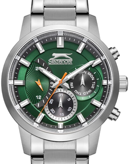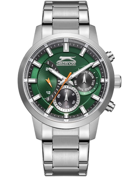 Slazenger (SL.09.2372.2.02) — стильные мужские часы, сочетающие современный дизайн и функциональность. Корпус выполнен из суперметалла, придающей модели прочность и долговечность. Минеральное стеклоМинеральное стеклоМинеральное стекло представляет собой искусственно выращенный минерал кварца. Такое стекло отличается особой устойчивостью к повреждениям и царапинам. Уступает по некоторым качествам сапфировому стеклу. защищает циферблат от царапин и гарантирует превосходную читаемость. Циферблат с серебристыми метками и стрелками подчёркивает элегантный стиль. Браслет из суперметалла обеспечивает комфортное ношение и надёжную фиксацию на запястье. Функциональность дополняется многофункциональным дисплеем с индикацией даты, дня недели и 24-часового формата времени. Водонепроницаемость 50 метров делает модель устойчивой к случайным брызгам, идеально подходя для повседневного использования.