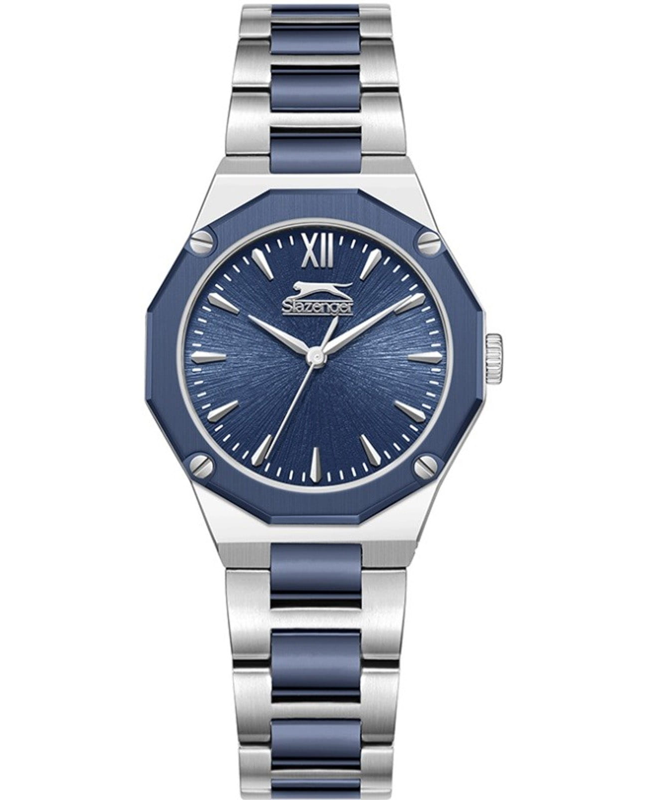 Slazenger SL.09.2374.3.05 — элегантные женские наручные часы, сочетающие изысканный дизайн и функциональность. Корпус выполнен из суперметалла, обеспечивающего лёгкость и прочность. Минеральное стеклоМинеральное стеклоМинеральное стекло представляет собой искусственно выращенный минерал кварца. Такое стекло отличается особой устойчивостью к повреждениям и царапинам. Уступает по некоторым качествам сапфировому стеклу. защищает циферблат от царапин и гарантирует превосходную читаемость. БезельБезельВнешний ободок, закрепляющий стекло. В спортивных часах так называется поворотное кольцо с делениями на циферблате, выполняет роль таймера – замеряет отрезки времени на шкале. Неподвижный безель – элемент декора. Однонаправленно вращающийся безель на дайверских часах позволяет фиксировать моменты погружения и выныривания на поверхность. с PVD-покрытиемPVDУльтратонкое покрытие наносится в технике вакуумного напыления, сочетает в себе нитрид титана особой прочности со слоем золота или оксида хрома. Несёт в себе декоративную или защитную функцию.. Циферблат подчёркивает стильный и современный образ. Браслет из суперметалла серебристого цвета с PVD-покрытиемPVDУльтратонкое покрытие наносится в технике вакуумного напыления, сочетает в себе нитрид титана особой прочности со слоем золота или оксида хрома. Несёт в себе декоративную или защитную функцию. обеспечивает комфортное ношение и надёжную фиксацию на запястье. Водонепроницаемость 30 метров делает модель устойчивой к случайным брызгам, что идеально подходит для повседневного использования.