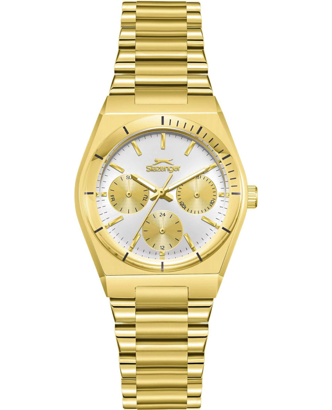 Женские кварцевые часы Slazenger — это элегантный и функциональный аксессуар. Корпус диаметром 32 мм и толщиной 10,5 мм выполнен из суперметалла с IP-покрытиемIP-покрытиеМетод ионного напыления. Демонстрирует повышенную устойчивость к истиранию, окислению и химическим веществам. Под воздействием высокого давления и температуры около 1500°C молекулы металла надёжно соединяются с частицами корпуса часов.. Циферблат серебристого цвета оформлен индексами и стрелками. Циферблат защищён минеральным стекломМинеральное стеклоМинеральное стекло представляет собой искусственно выращенный минерал кварца. Такое стекло отличается особой устойчивостью к повреждениям и царапинам. Уступает по некоторым качествам сапфировому стеклу.. Механизм — кварцевый. Часы оснащены индикацией дня недели, даты и 12/24-часового формата времени. Стрелки с люминесцентным покрытиемЛюминесцентное покрытиеПозволяет считывать показания времени в темноте. Производители наносят на стрелки, часовые индексы, безель или поверхность циферблата светонакопительный состав, дающий холодное свечение., обеспечивающим хорошую читаемость в темноте. Часы оснащены браслетом из суперметалла с IP-покрытиемIP-покрытиеМетод ионного напыления. Демонстрирует повышенную устойчивость к истиранию, окислению и химическим веществам. Под воздействием высокого давления и температуры около 1500°C молекулы металла надёжно соединяются с частицами корпуса часов. и раскладной застёжкойРаскладная застёжкаТакой тип застёжки используется только на браслетах из металла. Она никогда не раскрывается полностью, происходит разделение на 2 и более частей. Раскладывающая застёжка снизит вероятность потери часов к минимуму.. Водонепроницаемость 50 м позволяет использовать часы в повседневных условиях. Гарантия — 12 месяцев. Идеальный выбор для тех, кто ценит стиль, функциональность и качество.