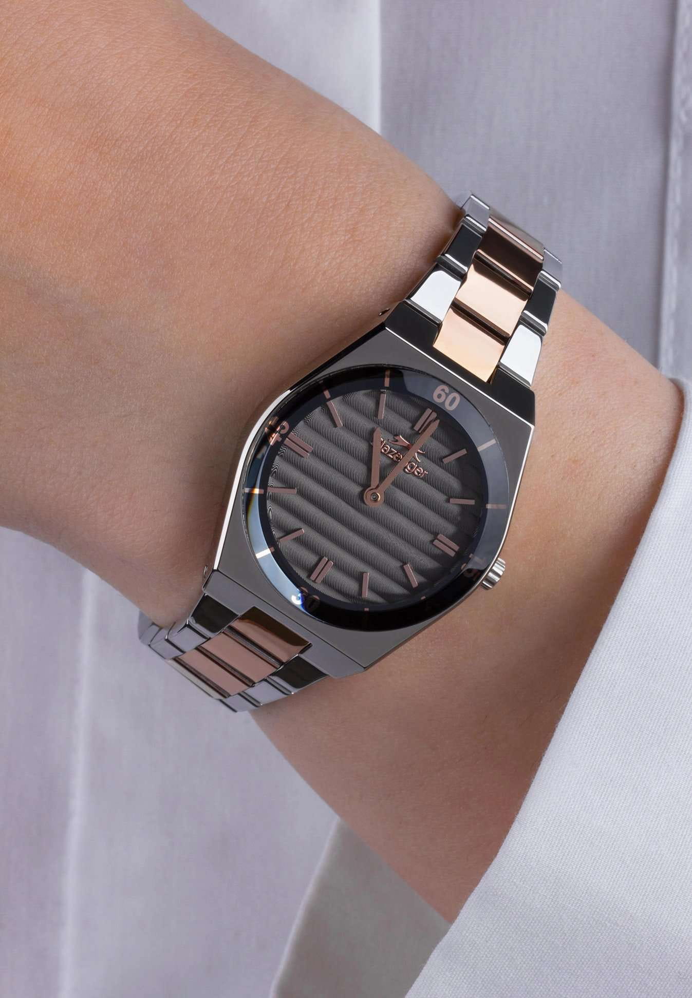 Женские кварцевые часы Slazenger — это элегантный аксессуар. Корпус диаметром 28 мм и толщиной 7,5 мм выполнен из суперметалла. БезельБезельВнешний ободок, закрепляющий стекло. В спортивных часах так называется поворотное кольцо с делениями на циферблате, выполняет роль таймера – замеряет отрезки времени на шкале. Неподвижный безель – элемент декора. Однонаправленно вращающийся безель на дайверских часах позволяет фиксировать моменты погружения и выныривания на поверхность. из суперметалла с IP-покрытиемIP-покрытиеМетод ионного напыления. Демонстрирует повышенную устойчивость к истиранию, окислению и химическим веществам. Под воздействием высокого давления и температуры около 1500°C молекулы металла надёжно соединяются с частицами корпуса часов.. Циферблат чёрного цвета оформлен индексами и стрелками. Циферблат защищён минеральным стекломМинеральное стеклоМинеральное стекло представляет собой искусственно выращенный минерал кварца. Такое стекло отличается особой устойчивостью к повреждениям и царапинам. Уступает по некоторым качествам сапфировому стеклу.. Механизм — кварцевый. Часы оснащены браслетом из суперметалла с IP-покрытиемIP-покрытиеМетод ионного напыления. Демонстрирует повышенную устойчивость к истиранию, окислению и химическим веществам. Под воздействием высокого давления и температуры около 1500°C молекулы металла надёжно соединяются с частицами корпуса часов. на раскладной застёжкеРаскладная застёжкаТакой тип застёжки используется только на браслетах из металла. Она никогда не раскрывается полностью, происходит разделение на 2 и более частей. Раскладывающая застёжка снизит вероятность потери часов к минимуму.. Водонепроницаемость 50 м позволяет использовать часы в повседневных условиях. Гарантия — 12 месяцев. Идеальный выбор для тех, кто ценит стиль и качество.