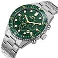 Мужские кварцевые часы Slazenger — это выразительный и функциональный аксессуар. Корпус диаметром 43 мм и толщиной 12 мм выполнен из нержавеющей стали 316L. Циферблат зелёного цвета оформлен индексами и стрелками. Циферблат защищён минеральным стекломМинеральное стеклоМинеральное стекло представляет собой искусственно выращенный минерал кварца. Такое стекло отличается особой устойчивостью к повреждениям и царапинам. Уступает по некоторым качествам сапфировому стеклу.. Механизм — кварцевый. Часы оснащены индикацией дня недели, даты, 12/24-часового формата времени и функцией второго часового пояса (GMT)Второй часовой поясФункция, позволяющая отображать время двух часовых поясов одновременно.. Окошко даты расположено между 4 и 5 часами. Стрелки и метки с люминесцентным покрытиемЛюминесцентное покрытиеПозволяет считывать показания времени в темноте. Производители наносят на стрелки, часовые индексы, безель или поверхность циферблата светонакопительный состав, дающий холодное свечение., обеспечивающим хорошую читаемость в темноте. БезельБезельВнешний ободок, закрепляющий стекло. В спортивных часах так называется поворотное кольцо с делениями на циферблате, выполняет роль таймера – замеряет отрезки времени на шкале. Неподвижный безель – элемент декора. Однонаправленно вращающийся безель на дайверских часах позволяет фиксировать моменты погружения и выныривания на поверхность. с IP-покрытиемIP-покрытиеМетод ионного напыления. Демонстрирует повышенную устойчивость к истиранию, окислению и химическим веществам. Под воздействием высокого давления и температуры около 1500°C молекулы металла надёжно соединяются с частицами корпуса часов.. Часы оснащены стальным браслетом с раскладной застёжкойРаскладная застёжкаТакой тип застёжки используется только на браслетах из металла. Она никогда не раскрывается полностью, происходит разделение на 2 и более частей. Раскладывающая застёжка снизит вероятность потери часов к минимуму.. Водонепроницаемость 100 м позволяет использовать часы для плавания и повседневного ношения. Гарантия — 12 месяцев. Идеальный выбор для тех, кто ценит стиль, функциональность и качество.
