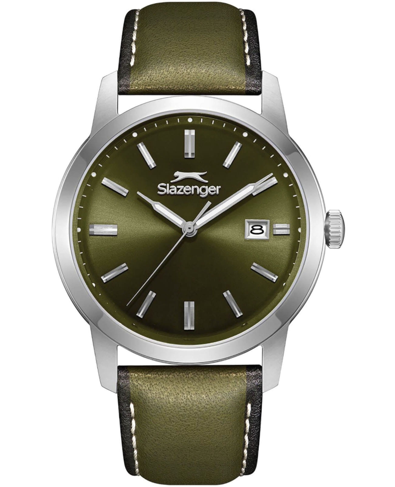 Мужские кварцевые часы Slazenger — это выразительный и функциональный аксессуар. Корпус диаметром 42 мм и толщиной 12,5 мм выполнен из нержавеющей стали 316L. Циферблат зелёного цвета оформлен индексами и стрелками. Циферблат защищён минеральным стекломМинеральное стеклоМинеральное стекло представляет собой искусственно выращенный минерал кварца. Такое стекло отличается особой устойчивостью к повреждениям и царапинам. Уступает по некоторым качествам сапфировому стеклу.. Механизм — кварцевый. Окошко даты расположено в положении 3 часов. Стрелки и метки с люминесцентным покрытиемЛюминесцентное покрытиеПозволяет считывать показания времени в темноте. Производители наносят на стрелки, часовые индексы, безель или поверхность циферблата светонакопительный состав, дающий холодное свечение., обеспечивающим хорошую читаемость в темноте. Часы оснащены кожаным ремешком с стандартной застёжкой. Водонепроницаемость 100 м позволяет использовать часы для плавания и повседневного ношения. Гарантия — 12 месяцев. Идеальный выбор для тех, кто ценит стиль, функциональность и качество.