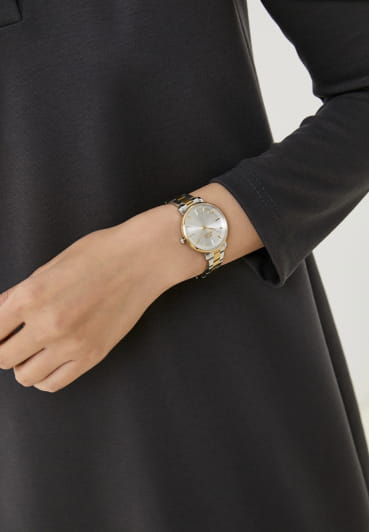 Женские кварцевые часы Slazenger — элегантный аксессуар с гармоничным дизайном и продуманной конструкцией. Корпус диаметром 35 мм и толщиной 8,5 мм выполнен из суперметалла. БезельБезельВнешний ободок, закрепляющий стекло. В спортивных часах так называется поворотное кольцо с делениями на циферблате, выполняет роль таймера – замеряет отрезки времени на шкале. Неподвижный безель – элемент декора. Однонаправленно вращающийся безель на дайверских часах позволяет фиксировать моменты погружения и выныривания на поверхность. с IP-покрытиемIP-покрытиеМетод ионного напыления. Демонстрирует повышенную устойчивость к истиранию, окислению и химическим веществам. Под воздействием высокого давления и температуры около 1500°C молекулы металла надёжно соединяются с частицами корпуса часов.. Циферблат серебристого цвета оформлен индексами и стрелками. Циферблат защищён минеральным стекломМинеральное стеклоМинеральное стекло представляет собой искусственно выращенный минерал кварца. Такое стекло отличается особой устойчивостью к повреждениям и царапинам. Уступает по некоторым качествам сапфировому стеклу.. Механизм — кварцевый калибр Miyota 2035. Браслет из суперметалла с IP-покрытиемIP-покрытиеМетод ионного напыления. Демонстрирует повышенную устойчивость к истиранию, окислению и химическим веществам. Под воздействием высокого давления и температуры около 1500°C молекулы металла надёжно соединяются с частицами корпуса часов.., обеспечивает цельный и утончённый образ. Часы оснащены раскладной застёжкойРаскладная застёжкаТакой тип застёжки используется только на браслетах из металла. Она никогда не раскрывается полностью, происходит разделение на 2 и более частей. Раскладывающая застёжка снизит вероятность потери часов к минимуму.. Водонепроницаемость 30 м позволяет использовать часы в повседневных условиях. Стильное решение для тех, кто ценит лаконичность и качество.