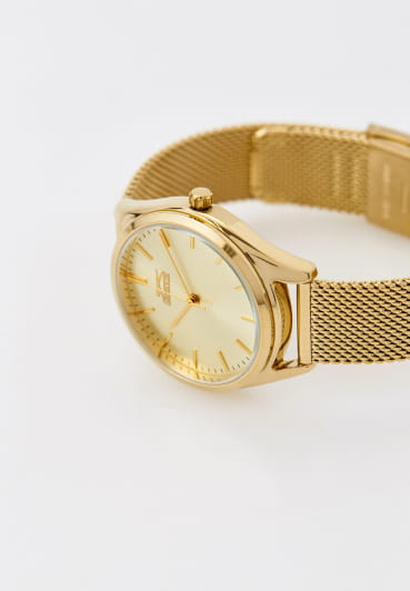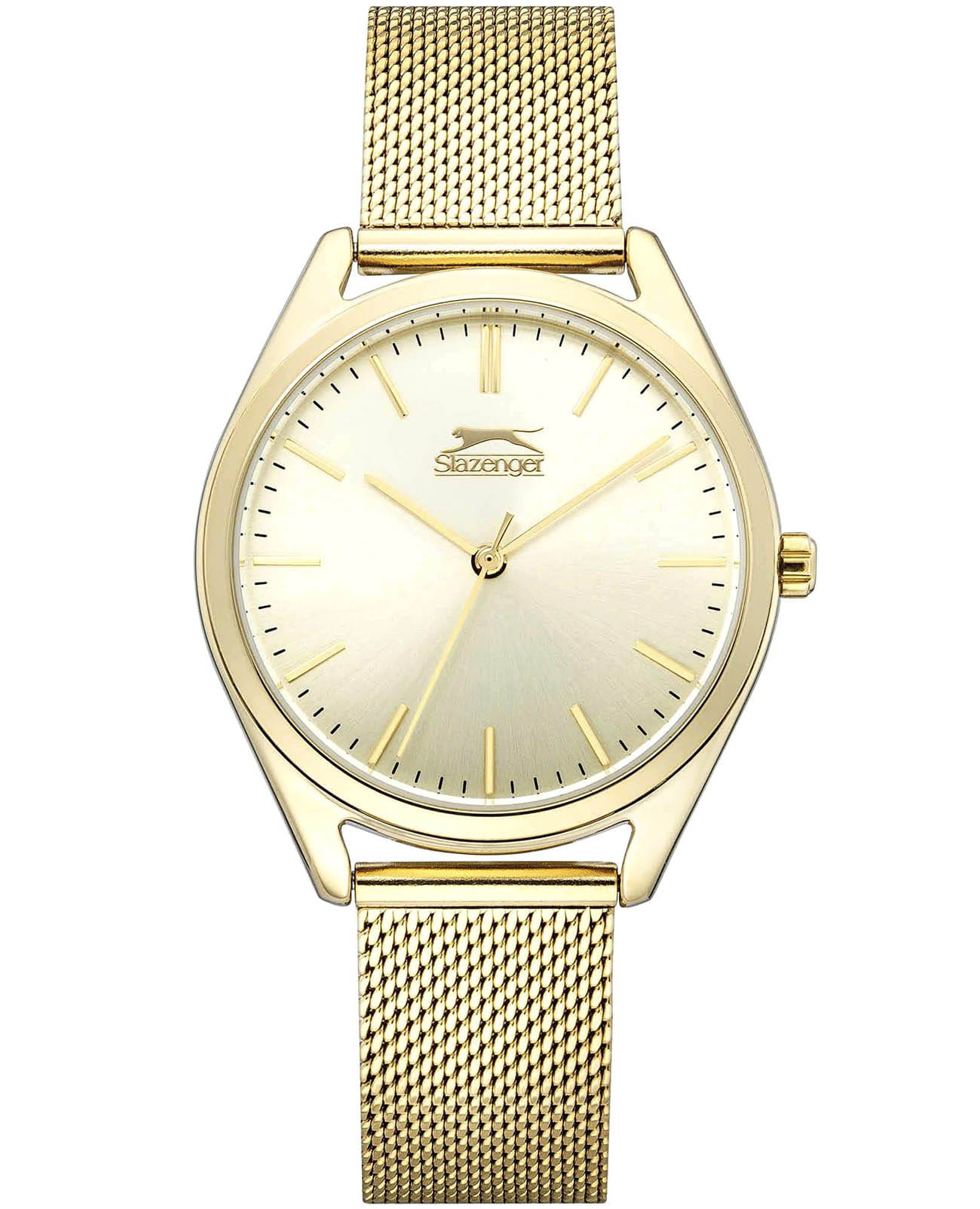 Женские кварцевые часы Slazenger — это элегантный аксессуар с браслетом миланского плетения. Корпус диаметром 35 мм и толщиной 8 мм выполнен из суперметалла с IP-покрытиемIP-покрытиеМетод ионного напыления. Демонстрирует повышенную устойчивость к истиранию, окислению и химическим веществам. Под воздействием высокого давления и температуры около 1500°C молекулы металла надёжно соединяются с частицами корпуса часов.. Циферблат цвета шампань оформлен индексами и стрелками. Циферблат защищён минеральным стекломМинеральное стеклоМинеральное стекло представляет собой искусственно выращенный минерал кварца. Такое стекло отличается особой устойчивостью к повреждениям и царапинам. Уступает по некоторым качествам сапфировому стеклу.. Часы оснащены браслетом из суперметалла на раскладной застёжкеРаскладная застёжкаТакой тип застёжки используется только на браслетах из металла. Она никогда не раскрывается полностью, происходит разделение на 2 и более частей. Раскладывающая застёжка снизит вероятность потери часов к минимуму.. Водонепроницаемость 30 м позволяет использовать часы в повседневных условиях. Идеальный выбор для тех, кто ценит стиль и качество.