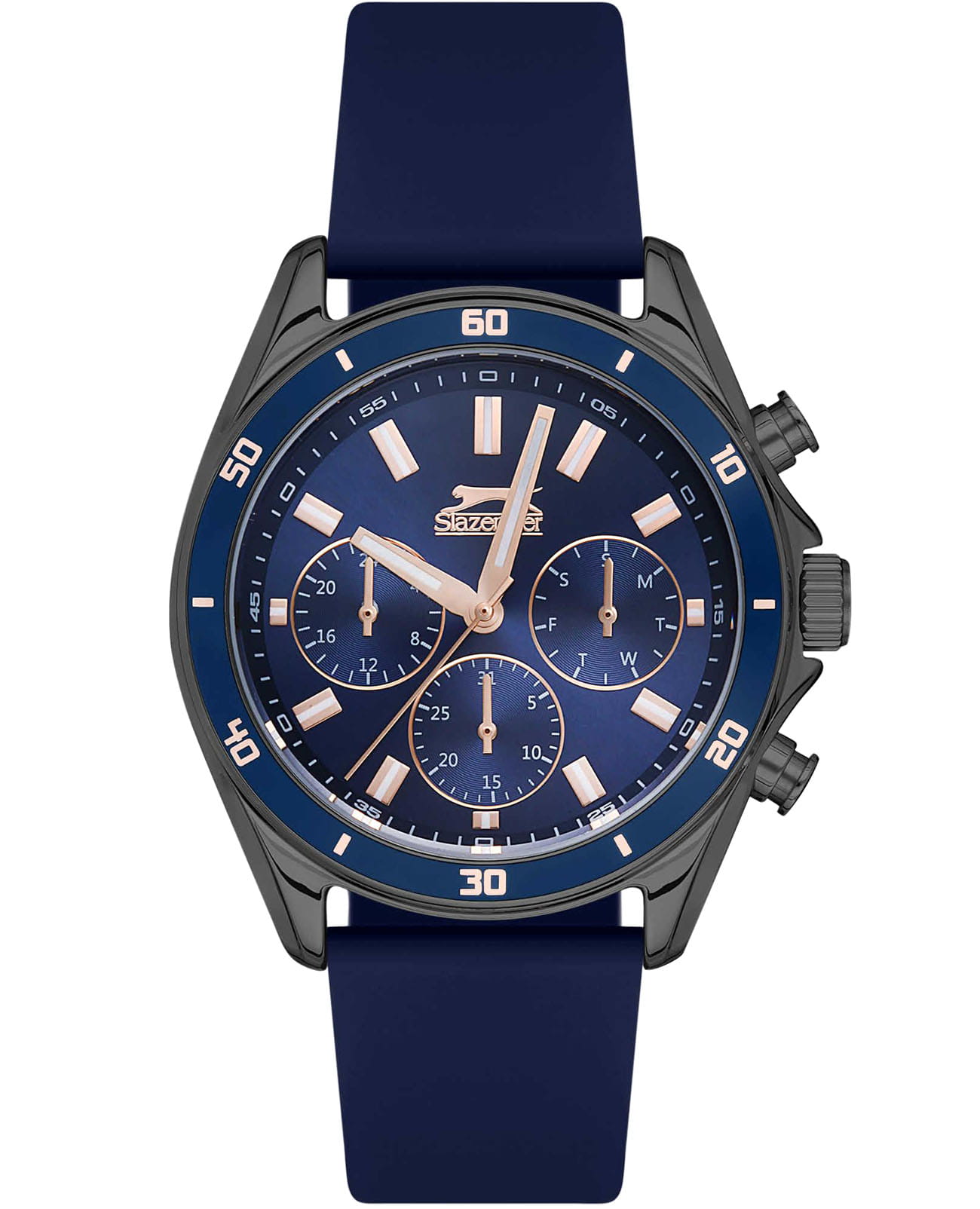 Мужские кварцевые часы Slazenger SL.09.6523.2.02 – идеальное сочетание классического дизайна и современных технологий, созданное для уверенных в себе мужчин. Корпус выполнен из суперметалла с IP-покрытиемIP-покрытиеМетод ионного напыления. Демонстрирует повышенную устойчивость к истиранию, окислению и химическим веществам. Под воздействием высокого давления и температуры около 1500°C молекулы металла надёжно соединяются с частицами корпуса часов. черного цвета, диаметром 45 мм и толщиной 12.5 мм, подчёркивает надежность модели и делает их идеальным аксессуаром для любой ситуации – будь то деловая встреча или повседневные выходы. Циферблат надёжно защищён минеральным стекломМинеральное стеклоМинеральное стекло представляет собой искусственно выращенный минерал кварца. Такое стекло отличается особой устойчивостью к повреждениям и царапинам. Уступает по некоторым качествам сапфировому стеклу., которое устойчиво к механическим повреждениям и сохраняет кристальную прозрачность. Силиконовый ремешок на стандартной застёжке, обеспечивает надёжность и комфорт в повседневном ношении. Стрелки и метки покрыты люминесцентным покрытиемЛюминесцентное покрытиеПозволяет считывать показания времени в темноте. Производители наносят на стрелки, часовые индексы, безель или поверхность циферблата светонакопительный состав, дающий холодное свечение., обеспечивающим отличную читаемость в темноте. Неподвижный безельБезельВнешний ободок, закрепляющий стекло. В спортивных часах так называется поворотное кольцо с делениями на циферблате, выполняет роль таймера – замеряет отрезки времени на шкале. Неподвижный безель – элемент декора. Однонаправленно вращающийся безель на дайверских часах позволяет фиксировать моменты погружения и выныривания на поверхность. с IP-покрытиемIP-покрытиеМетод ионного напыления. Демонстрирует повышенную устойчивость к истиранию, окислению и химическим веществам. Под воздействием высокого давления и температуры около 1500°C молекулы металла надёжно соединяются с частицами корпуса часов. синего цвета. Вынесенный циферблат с 24-х часовым указателем времени. Эти часы станут не просто аксессуаром, а надежным спутником в любой ситуации, подчеркивая ваш безупречный вкус и деловой стиль. Водозащита 50 метров позволит защитить корпус от случайных брызг или капель дождя.