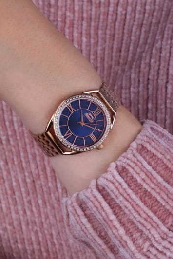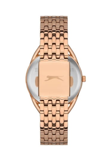 Женские кварцевые часы Slazenger SL.09.6537.3.02 – это сочетание элегантности, современного стиля и надёжности. Изящный корпус из суперметалла с IP-покрытиемIP-покрытиеМетод ионного напыления. Демонстрирует повышенную устойчивость к истиранию, окислению и химическим веществам. Под воздействием высокого давления и температуры около 1500°C молекулы металла надёжно соединяются с частицами корпуса часов. цвета розового золота, диаметром 35 мм и толщиной 9 мм, подчёркивает утончённость модели и делает их идеальным аксессуаром для любой ситуации – будь то деловая встреча, романтический вечер или повседневные выходы. Циферблат надёжно защищён минеральным стекломМинеральное стеклоМинеральное стекло представляет собой искусственно выращенный минерал кварца. Такое стекло отличается особой устойчивостью к повреждениям и царапинам. Уступает по некоторым качествам сапфировому стеклу., которое устойчиво к механическим повреждениям и сохраняет кристальную прозрачность. БезельБезельВнешний ободок, закрепляющий стекло. В спортивных часах так называется поворотное кольцо с делениями на циферблате, выполняет роль таймера – замеряет отрезки времени на шкале. Неподвижный безель – элемент декора. Однонаправленно вращающийся безель на дайверских часах позволяет фиксировать моменты погружения и выныривания на поверхность. украшен фианитами. Браслет из суперметалла с IP-покрытиемIP-покрытиеМетод ионного напыления. Демонстрирует повышенную устойчивость к истиранию, окислению и химическим веществам. Под воздействием высокого давления и температуры около 1500°C молекулы металла надёжно соединяются с частицами корпуса часов. удобно облегает запястье и фиксируется с помощью раскладной застёжкиРаскладная застёжкаТакой тип застёжки используется только на браслетах из металла. Она никогда не раскрывается полностью, происходит разделение на 2 и более частей. Раскладывающая застёжка снизит вероятность потери часов к минимуму., обеспечивая надёжность и комфорт в повседневном ношении. Утончённый стиль, внимание к деталям и практичность делают эту модель идеальным выбором для современных женщин, ценящих эстетику и функциональность. Водозащита до 30 метров позволит защитить корпус от случайных брызг или капель дождя.