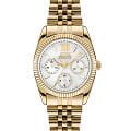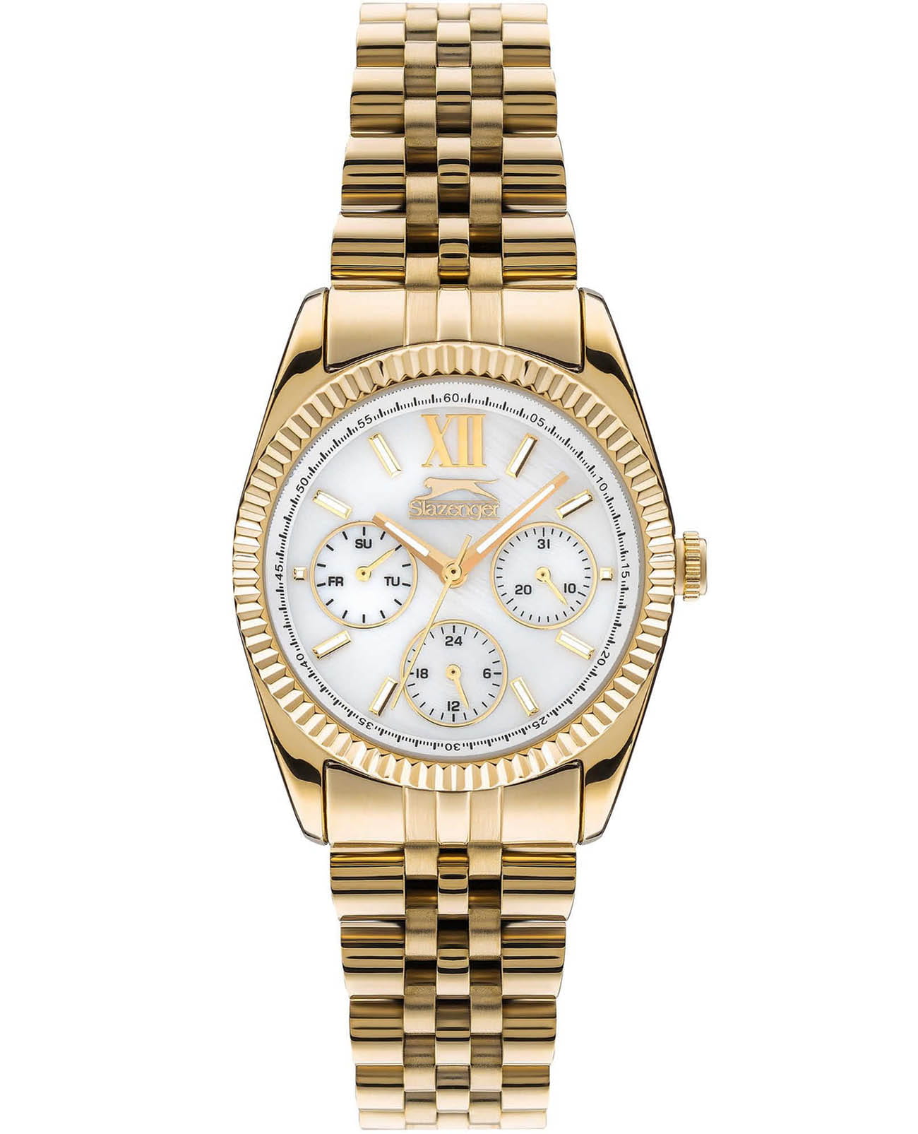 Женские элегантные наручные часы Slazenger SL.09.6556.4.03 сочетают в себе современный стиль и функциональность. Стильный корпус выполнен из суперметалла с IP-покрытиемIP-покрытиеМетод ионного напыления. Демонстрирует повышенную устойчивость к истиранию, окислению и химическим веществам. Под воздействием высокого давления и температуры около 1500°C молекулы металла надёжно соединяются с частицами корпуса часов. , придающий модели дополнительную прочность и элегантный внешний вид. Изысканный циферблат защищён минеральным стекломМинеральное стеклоМинеральное стекло представляет собой искусственно выращенный минерал кварца. Такое стекло отличается особой устойчивостью к повреждениям и царапинам. Уступает по некоторым качествам сапфировому стеклу., устойчивым к царапинам и повреждениям. Водонепроницаемость 3 АТМ позволяет использовать часы в повседневных условиях — при мытье рук или под лёгким дождём. Браслет из суперметалла с IP-покрытиемIP-покрытиеМетод ионного напыления. Демонстрирует повышенную устойчивость к истиранию, окислению и химическим веществам. Под воздействием высокого давления и температуры около 1500°C молекулы металла надёжно соединяются с частицами корпуса часов. и с раскладной застёжкойРаскладная застёжкаТакой тип застёжки используется только на браслетах из металла. Она никогда не раскрывается полностью, происходит разделение на 2 и более частей. Раскладывающая застёжка снизит вероятность потери часов к минимуму., обеспечивающий надёжную фиксацию и комфорт при ношении. На отдельные циферблаты вынесены указатели 24-часового времени, даты и дня недели, что делает использование часов особенно удобным в повседневной жизни. Cтрелки и метки покрыты люминесцентным покрытиемЛюминесцентное покрытиеПозволяет считывать показания времени в темноте. Производители наносят на стрелки, часовые индексы, безель или поверхность циферблата светонакопительный состав, дающий холодное свечение. для читаемости в условиях недостаточного освещения. Эта модель идеально подходит для женщин, ценящих стиль, функциональность и надёжность в одном аксессуаре.