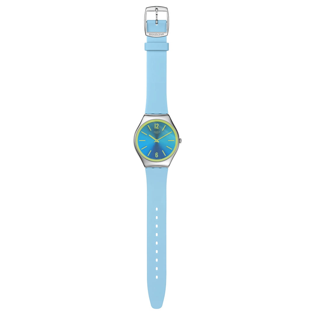 Часы Swatch SYXS156 — это стильный и современный аксессуар для тех, кто ценит лёгкость и комфорт. Часы идеально подойдут как для мужчин, так и для женщин. Эти ультра-тонкие стальные часы имеют голубой циферблат с радиальной полировкой, часовую и минутную стрелки желтого цвета, желтые печатные индексы и стекло с мерцающим эффектом Solar spectrum. Голубой ремешок элегантно контрастирует с корпусом и пряжкой из стали. Водозащита 30 метров делает часы практичными для повседневного использования. Эти часы подойдут для повседневного ношения и станут ярким акцентом в вашем наряде.