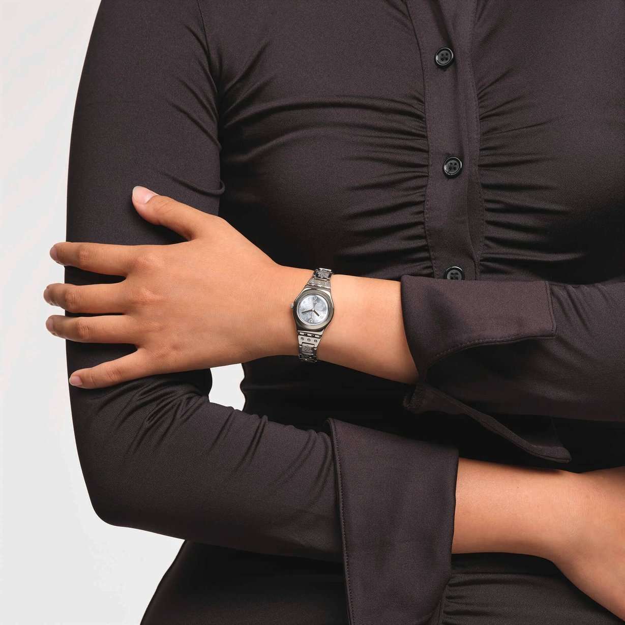 Часы Swatch YSS222G — это стильный и современный аксессуар для тех, кто ценит лёгкость и комфорт. На ремешке из нержавеющей стали этого браслета выгравированы цветы, словно вышитые шелком. Прозрачные светло-голубые кристаллы на браслете и торцевых деталях придают блеск и обрамляют корпус. Синий циферблат, подсвеченный солнцем, дополняет нежную цветочную игру браслета изящным серебряным цветочным узором и арабскими цифрами с серебряной печатью на всех часах. Часовая и минутная стрелки из светоотражающего металла и тонкая белая секундная стрелка указывают время. Водозащита 30 метров делает часы практичными для повседневного использования. Эти часы подойдут для повседневного ношения и станут ярким акцентом в вашем наряде.