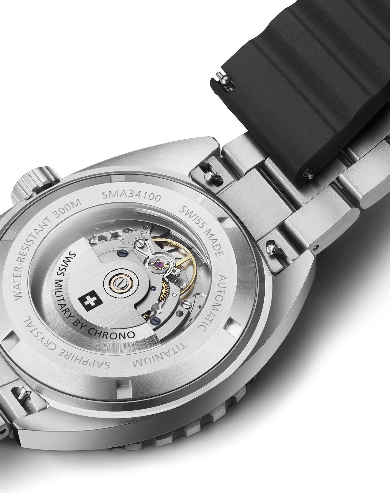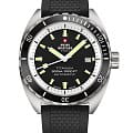 Мужские швейцарские механические часы с автоподзаводом Swiss Military by Chrono Titanium 300 SMA34100.07. Сапфировое стеклоСапфировое стеклоПрочный и надёжный материал из кристалла сапфира синтетического происхождения, характеризующийся особой твёрдостью и устойчивостью к царапинам и повреждениям. устойчивое к появлению царапин, обладающее высокой прозрачностью. Корпус часов изготовлен из титана. Вращающийся безельБезельВнешний ободок, закрепляющий стекло. В спортивных часах так называется поворотное кольцо с делениями на циферблате, выполняет роль таймера – замеряет отрезки времени на шкале. Неподвижный безель – элемент декора. Однонаправленно вращающийся безель на дайверских часах позволяет фиксировать моменты погружения и выныривания на поверхность. из высокотехнологичной керамикиВысокотехнологичная керамикаИнновационный запатентованный Rado материал с гладкой или матовой поверхностью. Керамика за счёт кристаллической структуры обладает повышенной устойчивостью от возникновения царапин. Материал способен принимать температуру тела человека, обеспечивая невероятный комфорт при ношении.. Индикация даты на позиции трех часов. Стрелки и метки с люминесцентной подсветкойЛюминесцентное покрытиеПозволяет считывать показания времени в темноте. Производители наносят на стрелки, часовые индексы, безель или поверхность циферблата светонакопительный состав, дающий холодное свечение.. Класс водозащиты: 300 метров, позволит плавать, нырять и заниматься другими водными видами спорта. Силиконовый браслет на раскладной застёжкеРаскладная застёжкаТакой тип застёжки используется только на браслетах из металла. Она никогда не раскрывается полностью, происходит разделение на 2 и более частей. Раскладывающая застёжка снизит вероятность потери часов к минимуму..