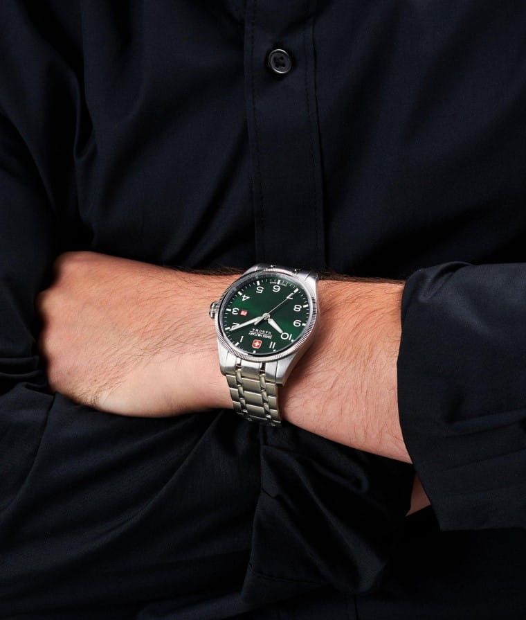 Мужские швейцарские часы Swiss Military Hanowa Thunderbolt SMWGH0000803, кварцевый механизм с высокой точностью. Сапфировое стеклоСапфировое стеклоПрочный и надёжный материал из кристалла сапфира синтетического происхождения, характеризующийся особой твёрдостью и устойчивостью к царапинам и повреждениям. устойчивое к появлению царапин, обладающее высокой прозрачностью. Класс водозащиты: 100 метров, позволит плавать, нырять и заниматься другими водными видами спорта. Корпус часов изготовлен из стали. Браслет с раскладной застёжкойРаскладная застёжкаТакой тип застёжки используется только на браслетах из металла. Она никогда не раскрывается полностью, происходит разделение на 2 и более частей. Раскладывающая застёжка снизит вероятность потери часов к минимуму..