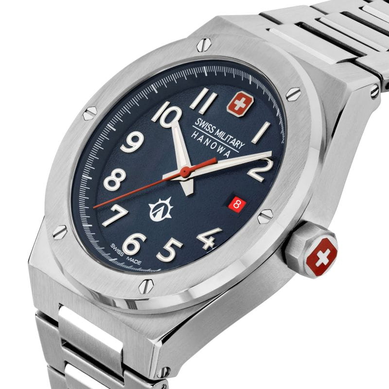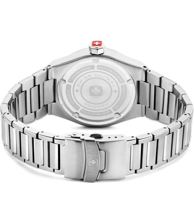 Мужские швейцарские часы с сапфировым стекломСапфировое стеклоПрочный и надёжный материал из кристалла сапфира синтетического происхождения, характеризующийся особой твёрдостью и устойчивостью к царапинам и повреждениям. Swiss Military Hanowa Sonoran SMWGH2101903, кварцевый механизм с высокой точностью. Сапфировое стеклоСапфировое стеклоПрочный и надёжный материал из кристалла сапфира синтетического происхождения, характеризующийся особой твёрдостью и устойчивостью к царапинам и повреждениям. устойчивое к появлению царапин, обладающее высокой прозрачностью. Класс водозащиты: 100 метров, позволит плавать, нырять и заниматься другими водными видами спорта. Корпус часов изготовлен из стали. Стальной браслет на раскладной застёжкеРаскладная застёжкаТакой тип застёжки используется только на браслетах из металла. Она никогда не раскрывается полностью, происходит разделение на 2 и более частей. Раскладывающая застёжка снизит вероятность потери часов к минимуму..