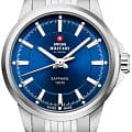 Часы Swiss Military SM34105.03 — это элегантный женский аксессуар, который сочетает классический дизайн и швейцарское качество. Корпус диаметром 28 мм выполнен из нержавеющей стали, что обеспечивает долговечность и надёжность. Синий циферблат с солнечным узором украшен люминесцентными индексамиЛюминесцентное покрытиеПозволяет считывать показания времени в темноте. Производители наносят на стрелки, часовые индексы, безель или поверхность циферблата светонакопительный состав, дающий холодное свечение. и стрелками, что позволяет легко считывать время в любых условиях. Циферблат защищён сапфировым стекломСапфировое стеклоПрочный и надёжный материал из кристалла сапфира синтетического происхождения, характеризующийся особой твёрдостью и устойчивостью к царапинам и повреждениям., устойчивым к царапинам.