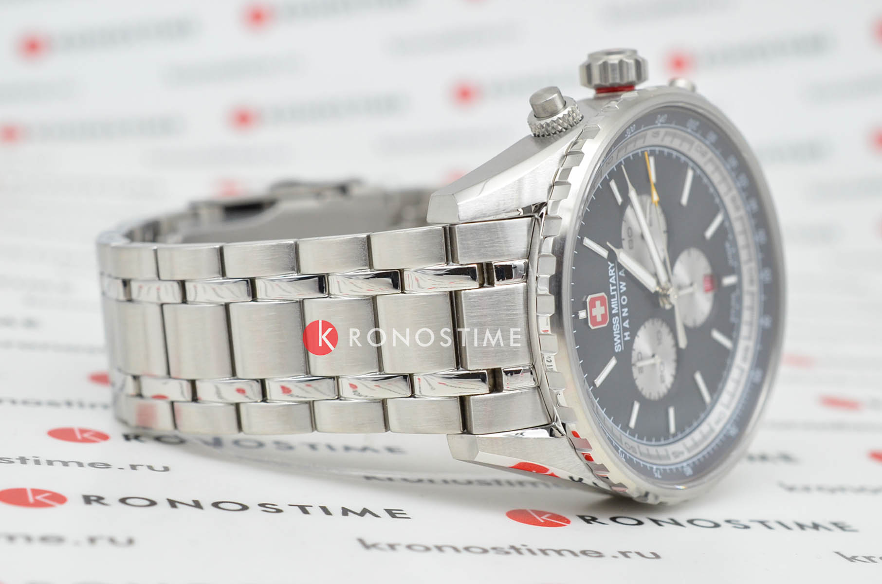 Мужские швейцарские часы Swiss Military Hanowa Afterburn Chrono SMWGI0000309 с хронографомХронографФункция позволяет измерять отрезки времени с особой точностью: часы, минуты, секунды. Верным признаком хронографа является наличие на циферблате 3 дополнительных окошек-счётчиков. и секундомеромСекундомерСекундоме́р — прибор, способный измерять интервалы времени с точностью до долей секунды.. Сапфировое стеклоСапфировое стеклоПрочный и надёжный материал из кристалла сапфира синтетического происхождения, характеризующийся особой твёрдостью и устойчивостью к царапинам и повреждениям. с антибликовым покрытием защищает циферблат от царапин и обеспечивает отличную читаемость при любом освещении. Корпус из нержавеющей стали диаметром 44 мм сбалансирован и элегантен. Браслет с раскладной застёжкойРаскладная застёжкаТакой тип застёжки используется только на браслетах из металла. Она никогда не раскрывается полностью, происходит разделение на 2 и более частей. Раскладывающая застёжка снизит вероятность потери часов к минимуму. идеально дополняют дизайн часов, обеспечивая комфортное ношение. Люминесцентное покрытиеЛюминесцентное покрытиеПозволяет считывать показания времени в темноте. Производители наносят на стрелки, часовые индексы, безель или поверхность циферблата светонакопительный состав, дающий холодное свечение. стрелок и меток позволит вам следить за временем даже в полной темноте. Стальной безельБезельВнешний ободок, закрепляющий стекло. В спортивных часах так называется поворотное кольцо с делениями на циферблате, выполняет роль таймера – замеряет отрезки времени на шкале. Неподвижный безель – элемент декора. Однонаправленно вращающийся безель на дайверских часах позволяет фиксировать моменты погружения и выныривания на поверхность. с PVD-покрытиемPVDУльтратонкое покрытие наносится в технике вакуумного напыления, сочетает в себе нитрид титана особой прочности со слоем золота или оксида хрома. Несёт в себе декоративную или защитную функцию.. Часы оснащены центральной секундной стрелкой и окошком даты в положении «6 часов», что делает их функциональными для повседневного использования. ТахиметрТахиметрРазмеченная шкала, располагается на ободке или безеле часов. Тахиметр позволяет рассчитать скорость на определённом участке пути, расстояние измеряется в километрах или милях. по внешнему краю. Водонепроницаемость до 100 метров. Идеальный выбор для тех, кто ценит качество и долговечность.