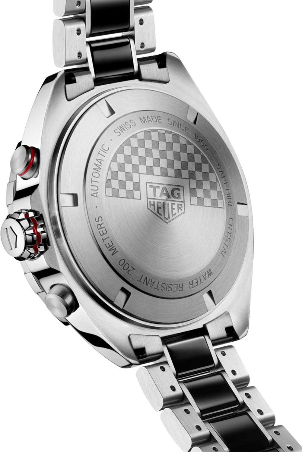 Мужские механические часы TAG Heuer Formula 1 Chronograph CAZ2012.BA0970 — это стильное сочетание элегантности и современного дизайна. Корпус из нержавеющей стали диаметром 44 мм идеально сбалансирован и элегантен. Сапфировое стеклоСапфировое стеклоПрочный и надёжный материал из кристалла сапфира синтетического происхождения, характеризующийся особой твёрдостью и устойчивостью к царапинам и повреждениям. с антибликовым покрытием защищает циферблат от царапин и обеспечивает отличную читаемость при любом освещении. Стальной браслет на раскладной застёжкеРаскладная застёжкаТакой тип застёжки используется только на браслетах из металла. Она никогда не раскрывается полностью, происходит разделение на 2 и более частей. Раскладывающая застёжка снизит вероятность потери часов к минимуму. идеально дополняют дизайн часов, обеспечивая комфортное ношение. Стрелки и метки на циферблате имеют люминесцентное покрытиеЛюминесцентное покрытиеПозволяет считывать показания времени в темноте. Производители наносят на стрелки, часовые индексы, безель или поверхность циферблата светонакопительный состав, дающий холодное свечение. позволяющее легко определять время даже в темноте. БезельБезельВнешний ободок, закрепляющий стекло. В спортивных часах так называется поворотное кольцо с делениями на циферблате, выполняет роль таймера – замеряет отрезки времени на шкале. Неподвижный безель – элемент декора. Однонаправленно вращающийся безель на дайверских часах позволяет фиксировать моменты погружения и выныривания на поверхность. тахиметраТахиметрРазмеченная шкала, располагается на ободке или безеле часов. Тахиметр позволяет рассчитать скорость на определённом участке пути, расстояние измеряется в километрах или милях. подчёркивает спортивное наследие часов. Часы обладают впечатляющей водонепроницаемостью до 20 бар (200 метров), что делает их идеальными для плавания, ныряния и погружений с аквалангом. Автоматический хронографХронографФункция позволяет измерять отрезки времени с особой точностью: часы, минуты, секунды. Верным признаком хронографа является наличие на циферблате 3 дополнительных окошек-счётчиков. обеспечивает точное измерение времени на каждом круге. Запас хода до 42 часов. Завинчивающаяся задняя крышка украшена специальным узором «клетка». Прочная конструкция часов и высокопроизводительный механизм делают их идеальным спутником для любителей гонок.