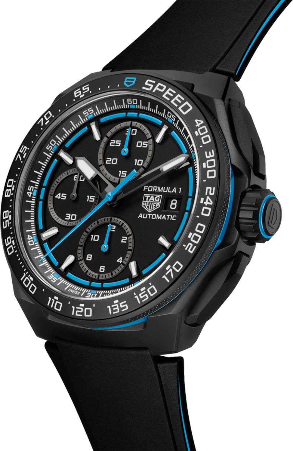 Мужские механические часы TAG Heuer Formula 1 Chronograph CBZ2084.FT8097 — это стильное сочетание элегантности и современного дизайна. Корпус из титана 2-го класса диаметром 44 мм c DLC-покрытиемDLC-покрытиеDiamond like carbon - одно из лучших видов покрытия, представляющее собой углерод с алмазными свойствами. На поверхность материала наносятся распавшиеся молекулы углерода, превращающиеся в плёнку из алмазоподобных связей, которая перенимает твёрдость алмаза. идеально сбалансирован и элегантен. Сапфировое стеклоСапфировое стеклоПрочный и надёжный материал из кристалла сапфира синтетического происхождения, характеризующийся особой твёрдостью и устойчивостью к царапинам и повреждениям. с антибликовым покрытием защищает циферблат от царапин и обеспечивает отличную читаемость при любом освещении. Резиновый ремешок на стандартной застежке идеально дополняют дизайн часов, обеспечивая комфортное ношение. Стрелки и метки на циферблате имеют люминесцентное покрытиеЛюминесцентное покрытиеПозволяет считывать показания времени в темноте. Производители наносят на стрелки, часовые индексы, безель или поверхность циферблата светонакопительный состав, дающий холодное свечение. позволяющее легко определять время даже в темноте. БезельБезельВнешний ободок, закрепляющий стекло. В спортивных часах так называется поворотное кольцо с делениями на циферблате, выполняет роль таймера – замеряет отрезки времени на шкале. Неподвижный безель – элемент декора. Однонаправленно вращающийся безель на дайверских часах позволяет фиксировать моменты погружения и выныривания на поверхность. тахиметраТахиметрРазмеченная шкала, располагается на ободке или безеле часов. Тахиметр позволяет рассчитать скорость на определённом участке пути, расстояние измеряется в километрах или милях. подчёркивает спортивное наследие часов. Часы обладают впечатляющей водонепроницаемостью до 20 бар (200 метров), что делает их идеальными для плавания, ныряния и погружений с аквалангом. Автоматический хронографХронографФункция позволяет измерять отрезки времени с особой точностью: часы, минуты, секунды. Верным признаком хронографа является наличие на циферблате 3 дополнительных окошек-счётчиков. обеспечивает точное измерение времени на каждом круге. Запас хода до 42 часов. Завинчивающаяся задняя крышка украшена специальным узором «клетка». Прочная конструкция часов и высокопроизводительный механизм делают их идеальным спутником для любителей гонок.