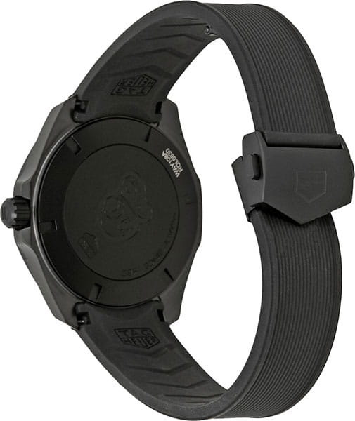 TAG Heuer Aquaracer WAY108A.FT6141 — элегантные мужские часы, сочетающие современный дизайн и высокую функциональность. Корпус диаметром 43 мм выполнен из титана с PVD-покрытиемPVDУльтратонкое покрытие наносится в технике вакуумного напыления, сочетает в себе нитрид титана особой прочности со слоем золота или оксида хрома. Несёт в себе декоративную или защитную функцию. чёрного цвета, обеспечивающим лёгкость и прочность. Белый циферблат с часовыми метками и стрелками, покрытыми люминесцентным покрытиемЛюминесцентное покрытиеПозволяет считывать показания времени в темноте. Производители наносят на стрелки, часовые индексы, безель или поверхность циферблата светонакопительный состав, дающий холодное свечение., гарантирует отличную читаемость в любых условиях освещения. Часы оснащены точным кварцевым механизмом, обеспечивающим стабильное отображение времени. Функциональность включает индикацию часов, минут, секунд и даты, расположенной на отметке «3 часа». Сапфировое стеклоСапфировое стеклоПрочный и надёжный материал из кристалла сапфира синтетического происхождения, характеризующийся особой твёрдостью и устойчивостью к царапинам и повреждениям. обеспечивает надёжную защиту от царапин и превосходную читаемость. Чёрный каучуковый ремешок оснащён раскладной застёжкойРаскладная застёжкаТакой тип застёжки используется только на браслетах из металла. Она никогда не раскрывается полностью, происходит разделение на 2 и более частей. Раскладывающая застёжка снизит вероятность потери часов к минимуму. из титана с PVD-покрытиемPVDУльтратонкое покрытие наносится в технике вакуумного напыления, сочетает в себе нитрид титана особой прочности со слоем золота или оксида хрома. Несёт в себе декоративную или защитную функцию. и двойными предохранительными кнопками. Водозащита до 300 метров (30 бар) делает модель идеальной для дайвинга и активного образа жизни.