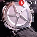 Броский хронографХронографФункция позволяет измерять отрезки времени с особой точностью: часы, минуты, секунды. Верным признаком хронографа является наличие на циферблате 3 дополнительных окошек-счётчиков. в спортивном стиле выразит ваше стремление двигаться только вперёд. Особенным является безельБезельВнешний ободок, закрепляющий стекло. В спортивных часах так называется поворотное кольцо с делениями на циферблате, выполняет роль таймера – замеряет отрезки времени на шкале. Неподвижный безель – элемент декора. Однонаправленно вращающийся безель на дайверских часах позволяет фиксировать моменты погружения и выныривания на поверхность. в необычной мотостилистике. Красная секундная стрелка добавляет динамичности. Каучуковый ремешок обеспечивает невероятный комфорт при ношении. Кварцевый механизм ETA G10.211 с высокой точностью хода. Сапфировое стекло. Корпус из хирургической стали 316L с чёрным PVD-покрытиемPVDУльтратонкое покрытие наносится в технике вакуумного напыления, сочетает в себе нитрид титана особой прочности со слоем золота или оксида хрома. Несёт в себе декоративную или защитную функцию.. Оригинальная задняя крышка в виде колеса. Водонепроницаемость 100 метров. Секундомер, тахиметрТахиметрРазмеченная шкала, располагается на ободке или безеле часов. Тахиметр позволяет рассчитать скорость на определённом участке пути, расстояние измеряется в километрах или милях., апертура даты. Габариты: 50,2 x 45,3 x 12,2 мм.