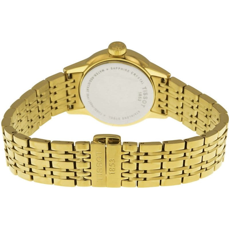 TISSOT T0852103302100 T-Classic Carson Quartz - женские кварцевые наручные часы Корпус этих часов небольшого размера (295 мм) и выполнен из нержавеющей стали L316 с PVD-покрытием цвета желтого золота Модель TISSOT T0852103302100 T-Classic Carson Quartz имеет устойчивое к царапинам сапфировое стекло, браслет из нержавеющей стали с PVD-покрытием цвета желтого золота, желтый циферблат Калибр механизма: ETA 803112 Класс водозащиты: 30 м / 3 АТМ (защита от брызг и случайных капель) Дополнительные функции и особенности: отображение числа Полная заводская комплектация TISSOT: оригинальные часы, фирменная коробка, инструкция, сервисная книжка, роман о часовой фабрике, миникаталог, замшевый фирменный чехол черного цвета для хранения и/или переноски часов, кассовый и товарный чеки Международная гарантия 2 года Производство и сборка: Швейцария