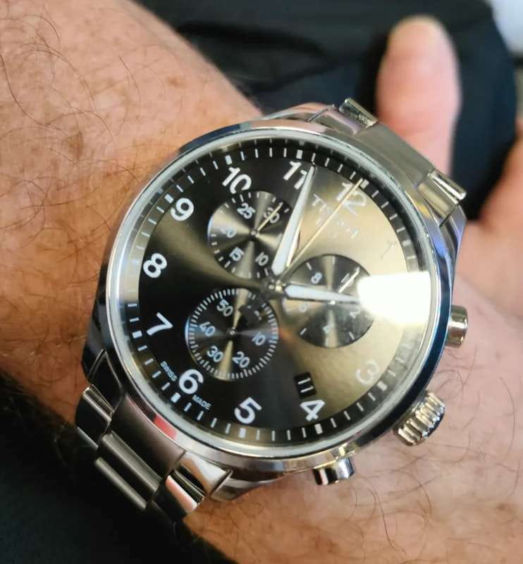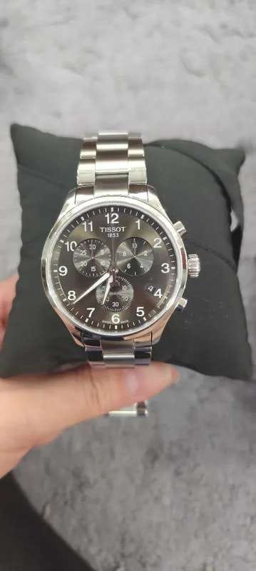 Наручные часы относятся к категории самых больших хронографов Tissot, диаметр их корпуса составляет 45 мм. Такая модель подчеркнёт любой образ и позволит выделяться среди окружающих. Циферблат в чёрном цвете отличается лаконичным исполнением, люминесцентное покрытие облегчает пользование часами в темноте. Сапфировое стекло отличается устойчивостью к появлению царапин. Кварцевый механизм ETA G10.212. Габариты: 45 x 45 x 11 мм.