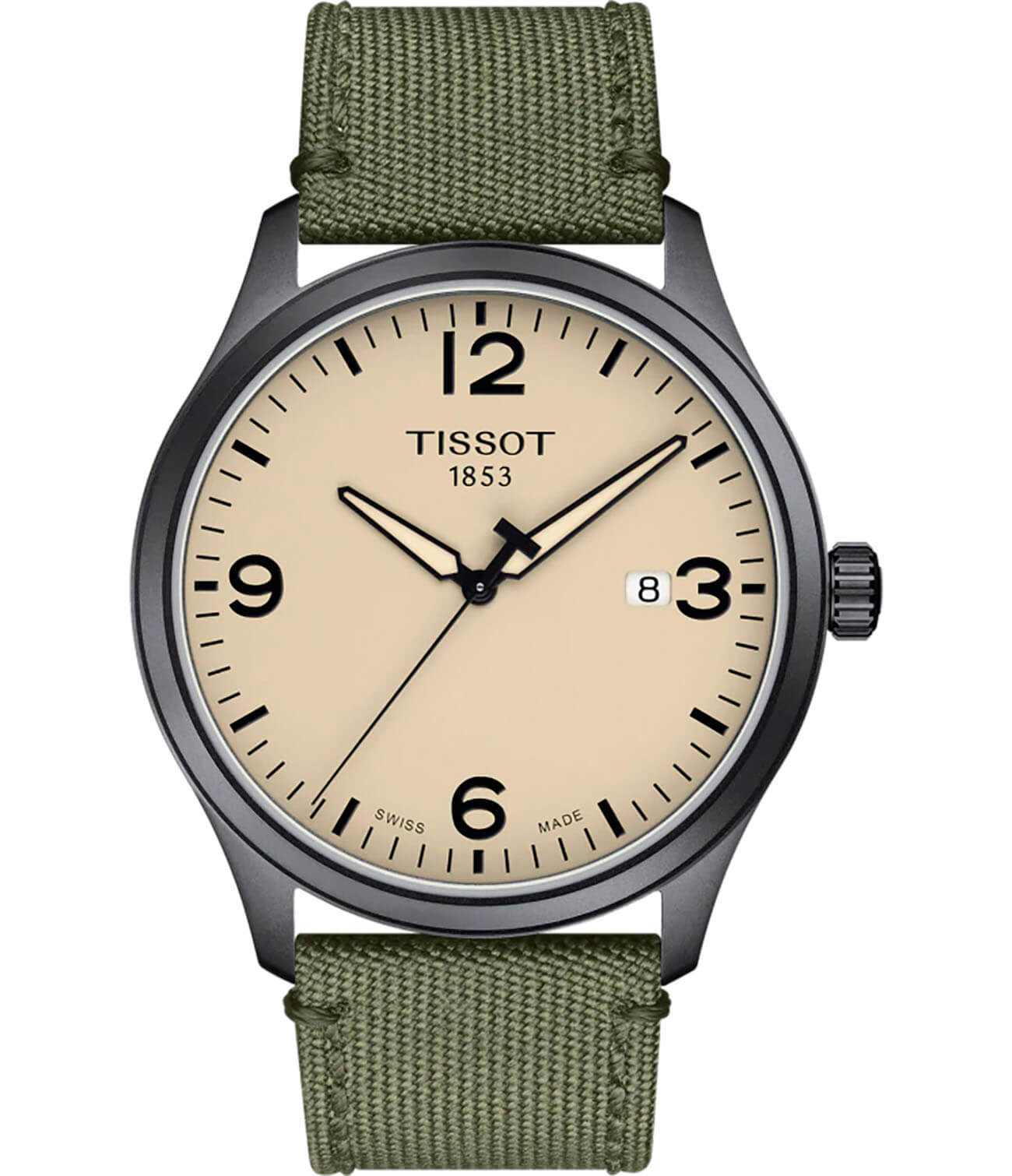 Компактные часы с тонким корпусом идеально сидят на запястье, стильный аксессуар притягивает внимание благодаря спортивному стилю и надёжному ремешку в цвете хаки. Тканевый материал не доставляет дискомфорт при ношении. Модель оснащена высокоточным кварцевым механизмом ETA F06.115 с 3 камнями. Сапфировое стекло. Серое PVD-покрытиеPVDУльтратонкое покрытие наносится в технике вакуумного напыления, сочетает в себе нитрид титана особой прочности со слоем золота или оксида хрома. Несёт в себе декоративную или защитную функцию.. Индикация даты, функция EOLEOLПредставляет собой систему, уведомляющую владельца часов о необходимости замены элемента питания. За 2 недели до полного разряда батарейки секундная стрелка перестаёт ходить чётко и начинает перепрыгивать на 3-4 деления.. Габариты: 42 x 42 x 8,9 мм.
