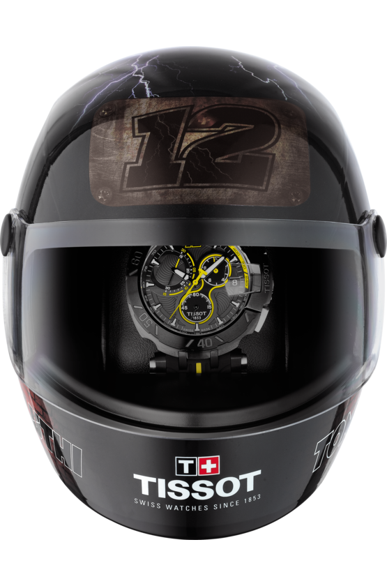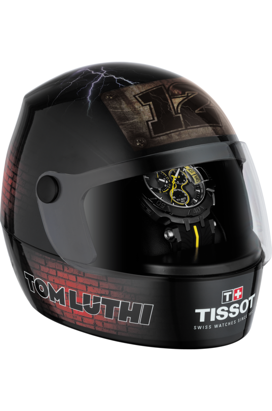 Мужские швейцарские часы Limited Edition из коллекции T-Race посвящены мотогонщику Томасу Люти, декор символизирует дух мотогонок MotoGP.