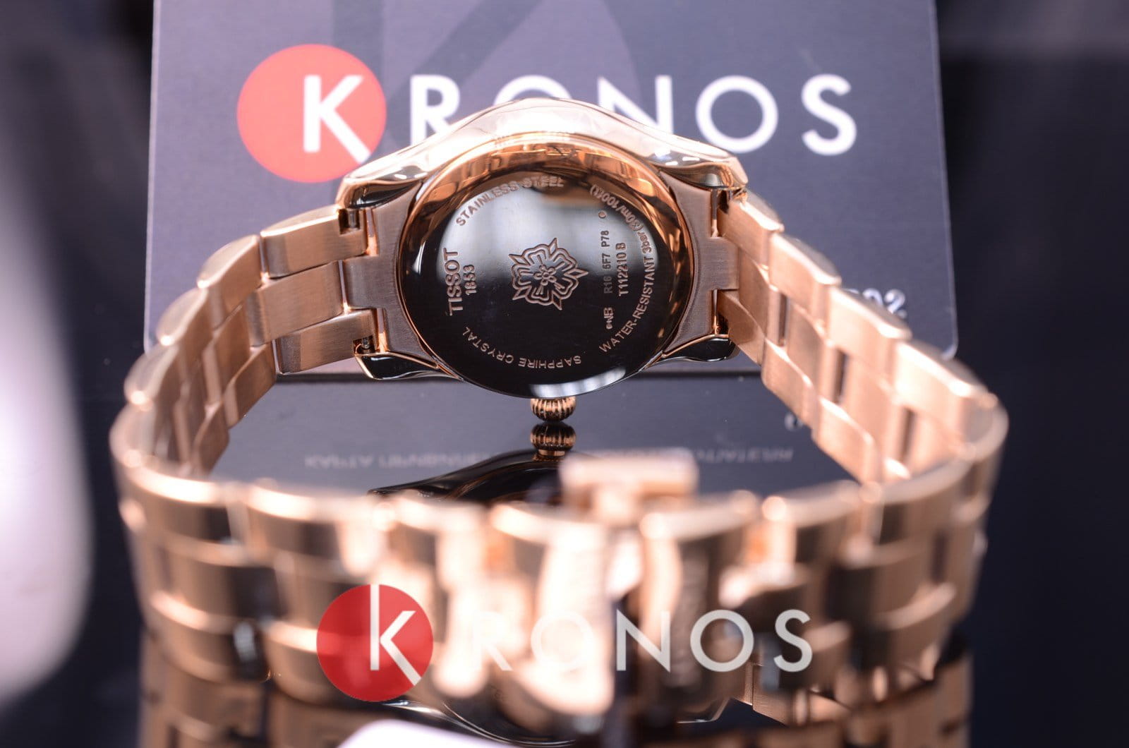 Минималистичный перламутровый циферблат с узором инкрустирован бриллиантами, имеющими законное происхождение. На светлом фоне идеально смотрятся тонкие стрелки в виде лепестков. Часы имеют PVD-покрытиеPVDУльтратонкое покрытие наносится в технике вакуумного напыления, сочетает в себе нитрид титана особой прочности со слоем золота или оксида хрома. Несёт в себе декоративную или защитную функцию. цвета розового золота. Внутри корпуса находится кварцевый механизм ETA F04.111 с высокой точностью хода. Сапфировое стекло. . Функция EOLEOLПредставляет собой систему, уведомляющую владельца часов о необходимости замены элемента питания. За 2 недели до полного разряда батарейки секундная стрелка перестаёт ходить чётко и начинает перепрыгивать на 3-4 деления.. Габариты: 30 x 30 x 8,7 мм.