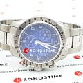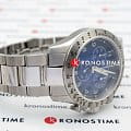 Сдержанный тёмно-синий циферблат со счётчиками хронографаХронографФункция позволяет измерять отрезки времени с особой точностью: часы, минуты, секунды. Верным признаком хронографа является наличие на циферблате 3 дополнительных окошек-счётчиков. акцентирует всё внимание на себе. Стрелки имеют люминесцентную подсветкуЛюминесцентное покрытиеПозволяет считывать показания времени в темноте. Производители наносят на стрелки, часовые индексы, безель или поверхность циферблата светонакопительный состав, дающий холодное свечение., чтобы использование часов в темноте не вызывало затруднений. Привлекательный внешний вид. Кварцевый механизм ETA G10.212. Хирургическая сталь устойчива к повреждениям и ударам. Водозащита до 10 бар. . Секундомер, тахиметрТахиметрРазмеченная шкала, располагается на ободке или безеле часов. Тахиметр позволяет рассчитать скорость на определённом участке пути, расстояние измеряется в километрах или милях., календарь. Габариты: 42,5 x 42,5 x 11,2 мм.