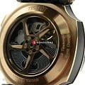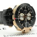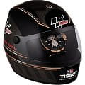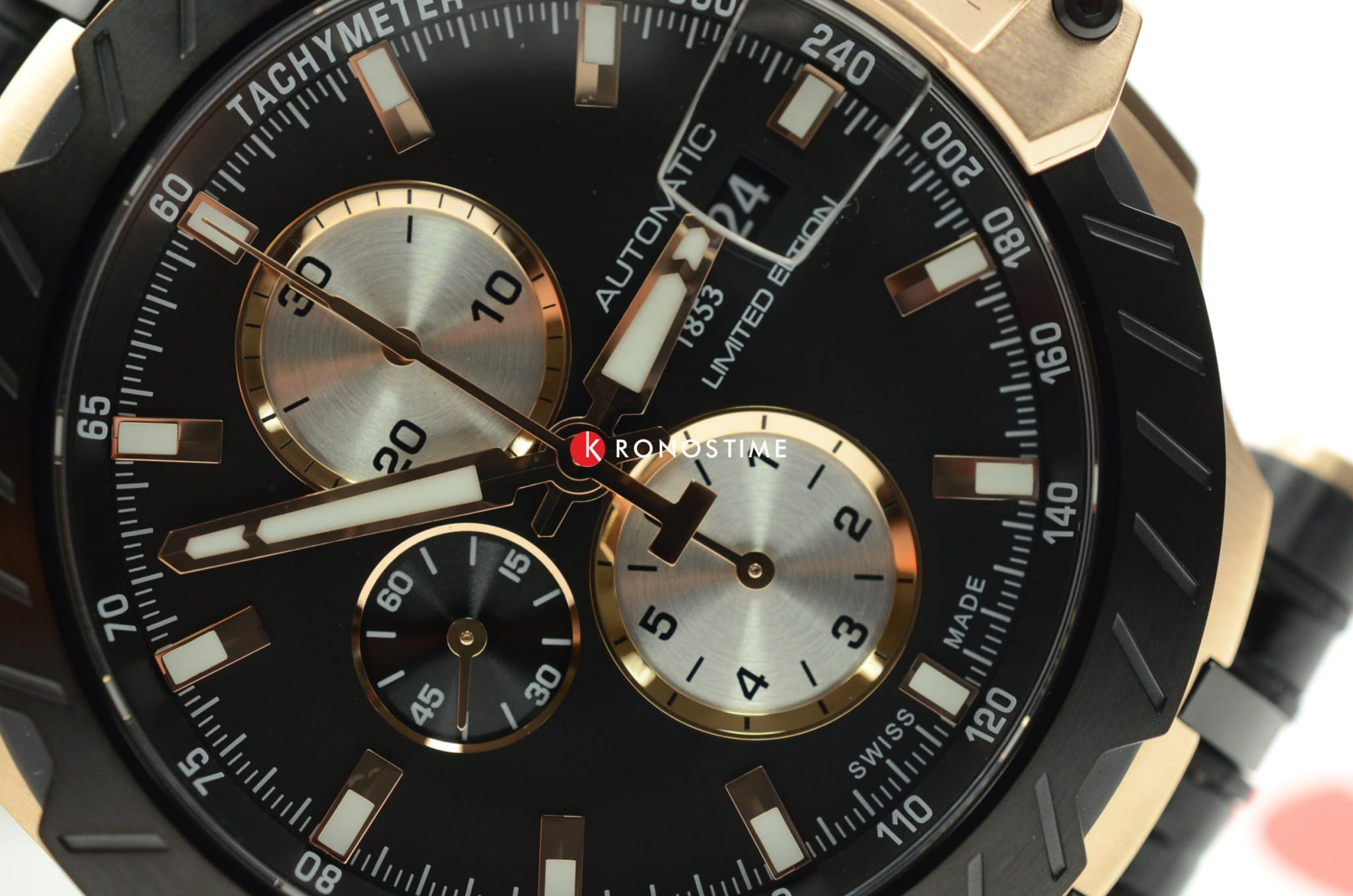 Наручные часы с чемпионским характером и стилистикой MotoGP выпускаются лимитированным тиражом, всего существует 3333 экземпляра. На нижней части задней крышки, выполненной в виде колеса, выгравирован индивидуальный номер. Модель дополнена механизмом C01.211 с запасом хода 45 часов. Корпус из хирургической стали с PVD-покрытиемPVDУльтратонкое покрытие наносится в технике вакуумного напыления, сочетает в себе нитрид титана особой прочности со слоем золота или оксида хрома. Несёт в себе декоративную или защитную функцию. цвета розового золота. Водостойкость до 10 бар. Кожаный ремешок с внутренней стороной из каучука. Антибликовое покрытие на поверхности сапфирового стекла. Оригинальная упаковка в виде мотошлема. Секундомер, тахиметрТахиметрРазмеченная шкала, располагается на ободке или безеле часов. Тахиметр позволяет рассчитать скорость на определённом участке пути, расстояние измеряется в километрах или милях., календарь. Габариты: 48,8 x 45 x 16,6 мм.