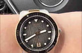 Модель в спортивном стиле дополнена элементами классического оформления. Степень водозащиты WR 300 позволяет использовать часы для дайвинга. Они работают за счёт механизма Powermatic 80Powermatic 80Эксклюзивный калибр от швейцарской компании ETA с увеличенным запасом хода до 80 часов за счёт удлинённой заводной пружины. Характеризуется улучшенной системой спуска со сниженным трением., запас хода составляет 80 часов. Прозрачная задняя крышка. Устойчивое к царапинам сапфировое стеклоСапфировое стеклоПрочный и надёжный материал из кристалла сапфира синтетического происхождения, характеризующийся особой твёрдостью и устойчивостью к царапинам и повреждениям. с антибликовым покрытием Корпус из нержавеющей стали с PVD-покрытиемPVDУльтратонкое покрытие наносится в технике вакуумного напыления, сочетает в себе нитрид титана особой прочности со слоем золота или оксида хрома. Несёт в себе декоративную или защитную функцию. из желтого золота. Однонаправленный керамический безельБезельВнешний ободок, закрепляющий стекло. В спортивных часах так называется поворотное кольцо с делениями на циферблате, выполняет роль таймера – замеряет отрезки времени на шкале. Неподвижный безель – элемент декора. Однонаправленно вращающийся безель на дайверских часах позволяет фиксировать моменты погружения и выныривания на поверхность.. Застёжка с фиксатором и удлинением для дайвингаУдлинение для дайверовЗастёжка с удлинением для дайверов представляет собой безопасное крепление, которое позволяет надевать часы поверх гидрокостюма. Гибкая застёжка удлиняется на 1-2 миллиметра.. Отображение текущего числа. Габариты: 40 x 40 x 12,5 мм.