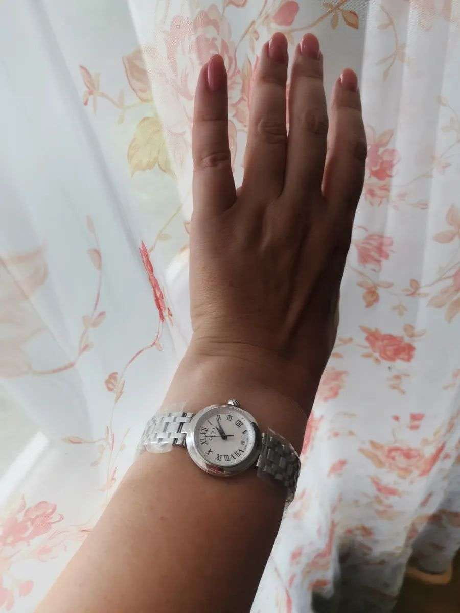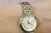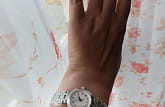 Дизайнеры реализуют свои идеи в оригинальном оформлении браслетов, центральные звенья цвета "розовое золото" приковывают взгляды. Интерес представляет также перламутровый циферблат компактного размера, благодаря этому часы красиво смотрятся на изящном женском запястье. Кварцевый механизм ETA F03.111. PVD-покрытие корпуса и браслета. Водонепроницаемость 100 метров. Габариты: 26 x 26 x 6,9 мм.