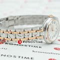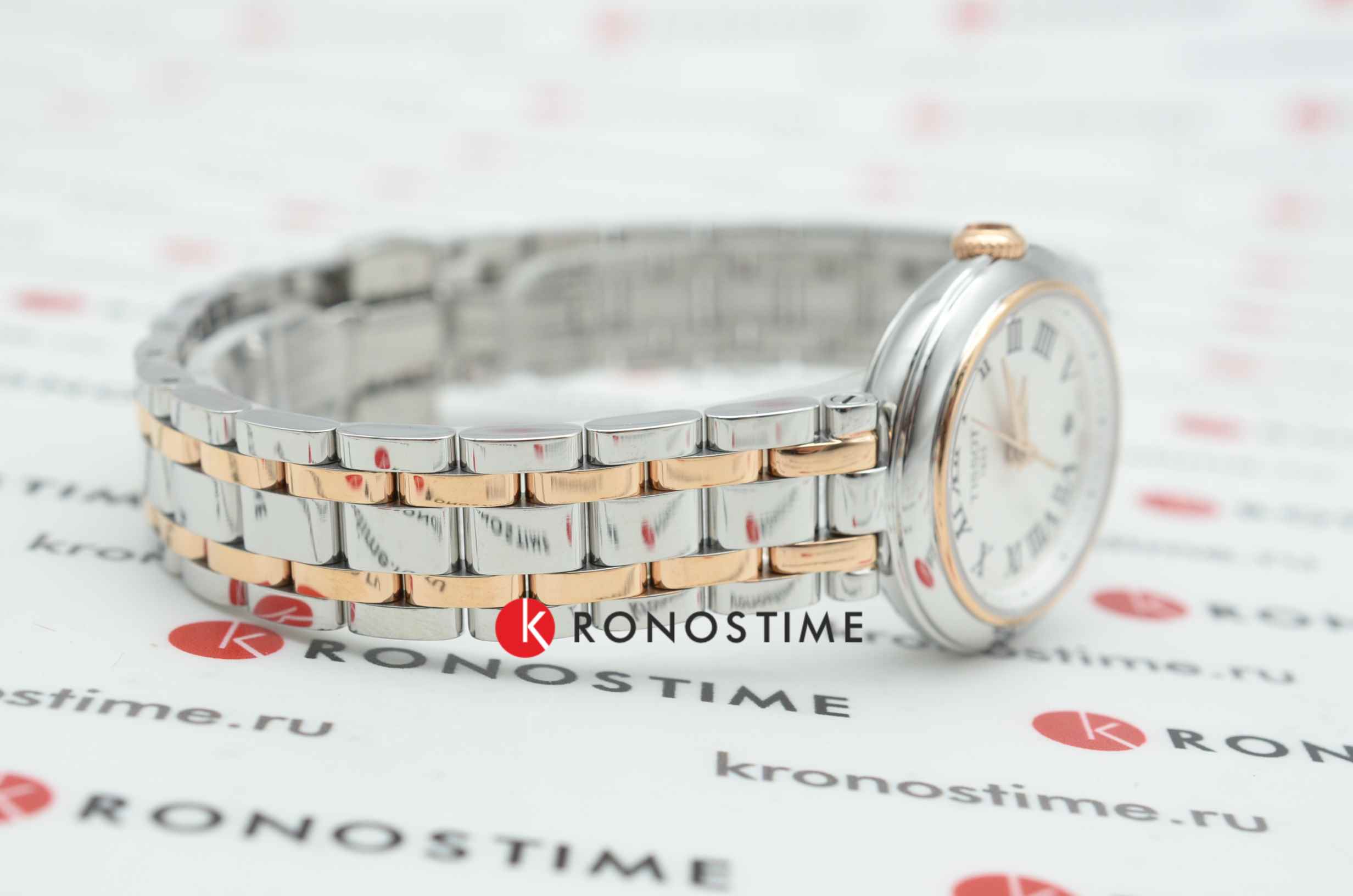 Дизайнеры реализуют свои идеи в оригинальном оформлении браслетов, центральные звенья цвета "розовое золото" приковывают взгляды. Интерес представляет также перламутровый циферблат компактного размера, благодаря этому часы красиво смотрятся на изящном женском запястье. Кварцевый механизм ETA F03.111. PVD-покрытие корпуса и браслета. Водонепроницаемость 100 метров. Габариты: 26 x 26 x 6,9 мм.