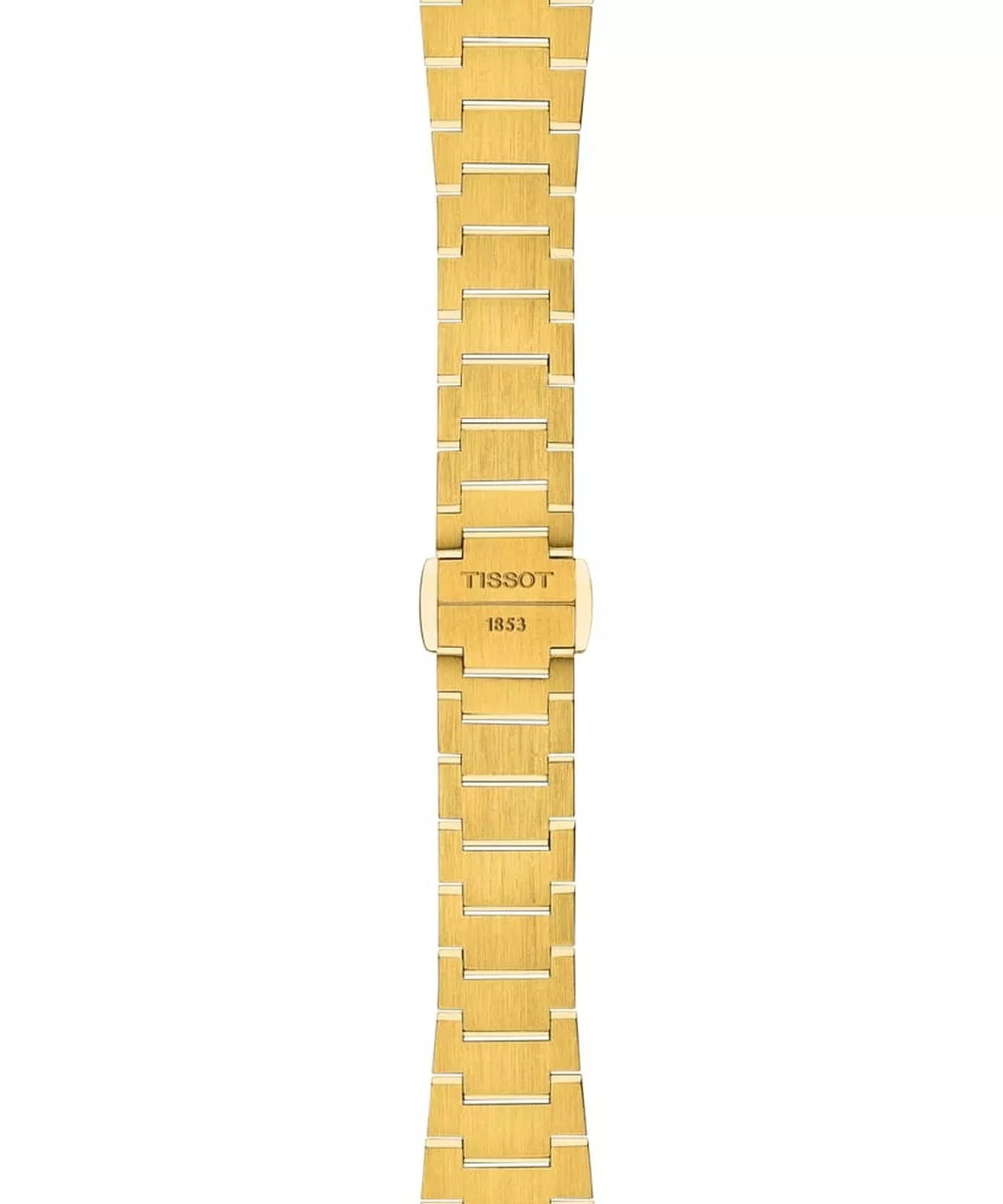 Мужские кварцевые часы Tissot PRX 25 мм T1370103302100 — это стильный аксессуар, вдохновлённый элегантностью 70-х годов. Модель выполнена в тонкой форме из нержавеющей стали 316L с PVD-покрытиемPVDУльтратонкое покрытие наносится в технике вакуумного напыления, сочетает в себе нитрид титана особой прочности со слоем золота или оксида хрома. Несёт в себе декоративную или защитную функцию. цвета жёлтого золота, что придаёт ей благородный внешний вид и устойчивость к царапинам. Циферблат шампанского цвета дополнен индексами, а его поверхность защищена сапфировым стекломСапфировое стеклоПрочный и надёжный материал из кристалла сапфира синтетического происхождения, характеризующийся особой твёрдостью и устойчивостью к царапинам и повреждениям. с антибликовым покрытиемАнтибликовое покрытиеСлой оксида металла в 0,13-0,3 микрон, благодаря которому стекло часов не бликует и не отражает свет. Антибликовое покрытие уменьшает отражение света в 10 раз, обеспечивая отличную читаемость показателей циферблата., устойчивым к повреждениям. Стрелки и метки имеют люминесцентное покрытиеЛюминесцентное покрытиеПозволяет считывать показания времени в темноте. Производители наносят на стрелки, часовые индексы, безель или поверхность циферблата светонакопительный состав, дающий холодное свечение. Super-LumiNova®, обеспечивающее отличную читаемость даже в условиях слабого освещения. Часы оснащены солнечным кварцевым механизмом швейцарского производства, который обеспечивает точную работу и минимальное обслуживание. Аккумулятор Renata 364 гарантирует длительную работу без подзарядки. Браслет из нержавеющей стали с покрытием цвета жёлтого золота оснащён Застёжка "бабочка"Застёжка "бабочка"Такой вид застёжки дополняется предохранителями, помогающими избежать случайного раскрытия браслета. Обладают изящным исполнением. , обеспечивающей комфорт и надёжную фиксацию на запястье. Ремешок является быстросменным, что позволяет легко менять его по желанию. Водонепроницаемость позволяет использовать модель при плавании и других водных активностях без глубокого погружения. Гарантия 2 года подтверждает качество и долговечность изделия. Эти часы станут универсальным аксессуаром для тех, кто ценит сочетание стиля, функциональности и швейцарского мастерства — идеальный выбор для повседневной носки и активного образа жизни.