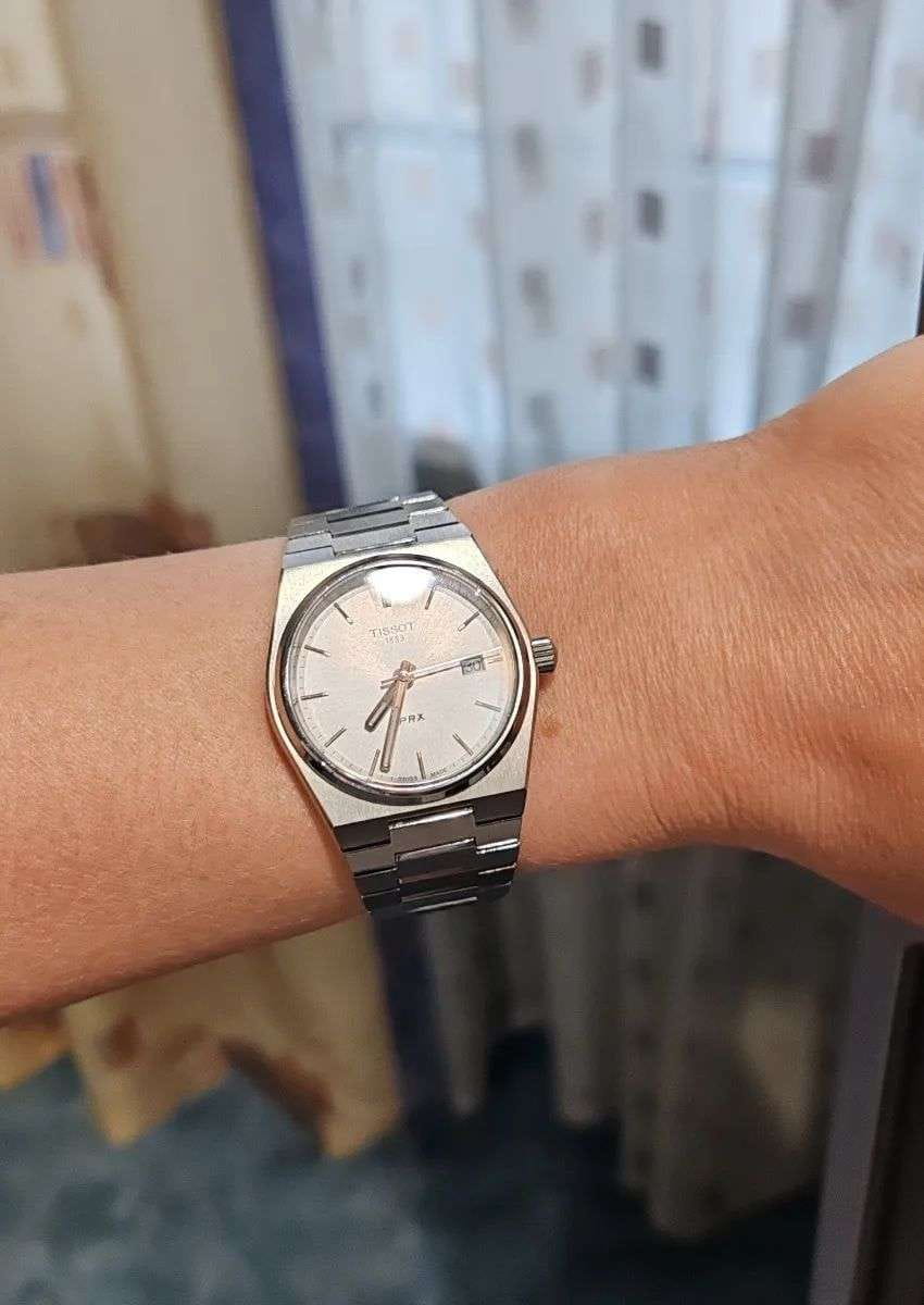 Маленькие очень удобные часы, мое запястье в обхвате 17 см, обычно ношу часы 40,5 мм. Эти мелковаты, сначала хотел вернуть, но в самом деле привык за пару дней, такой размер отсылает к оригинальным Rolex Datejust Oysterquartz. Сравнивал с PRX 40 мм, не знаю какие лучше, они просто разные: 35 - под костюм и шорты, 40 - под джинсы и оверсайз, вероятно. Само качество изготовления отличное, есть микро непопадания в метки, но оно настолько мизерное, что мне как-то до этого нет дела. Сомнений в оригинальности нет.