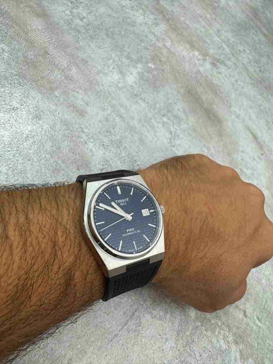 Мужские швейцарские часы Tissot PRX Powermatic 80 T137.407.17.041.00, с автоматическим механизмом Powermatic 80.111. Часы используют энергию движения запястья для автоподзавода и имеют запас хода до 80 часов, продолжая показывать точное время, даже если владелец не носил часы 3 дня.