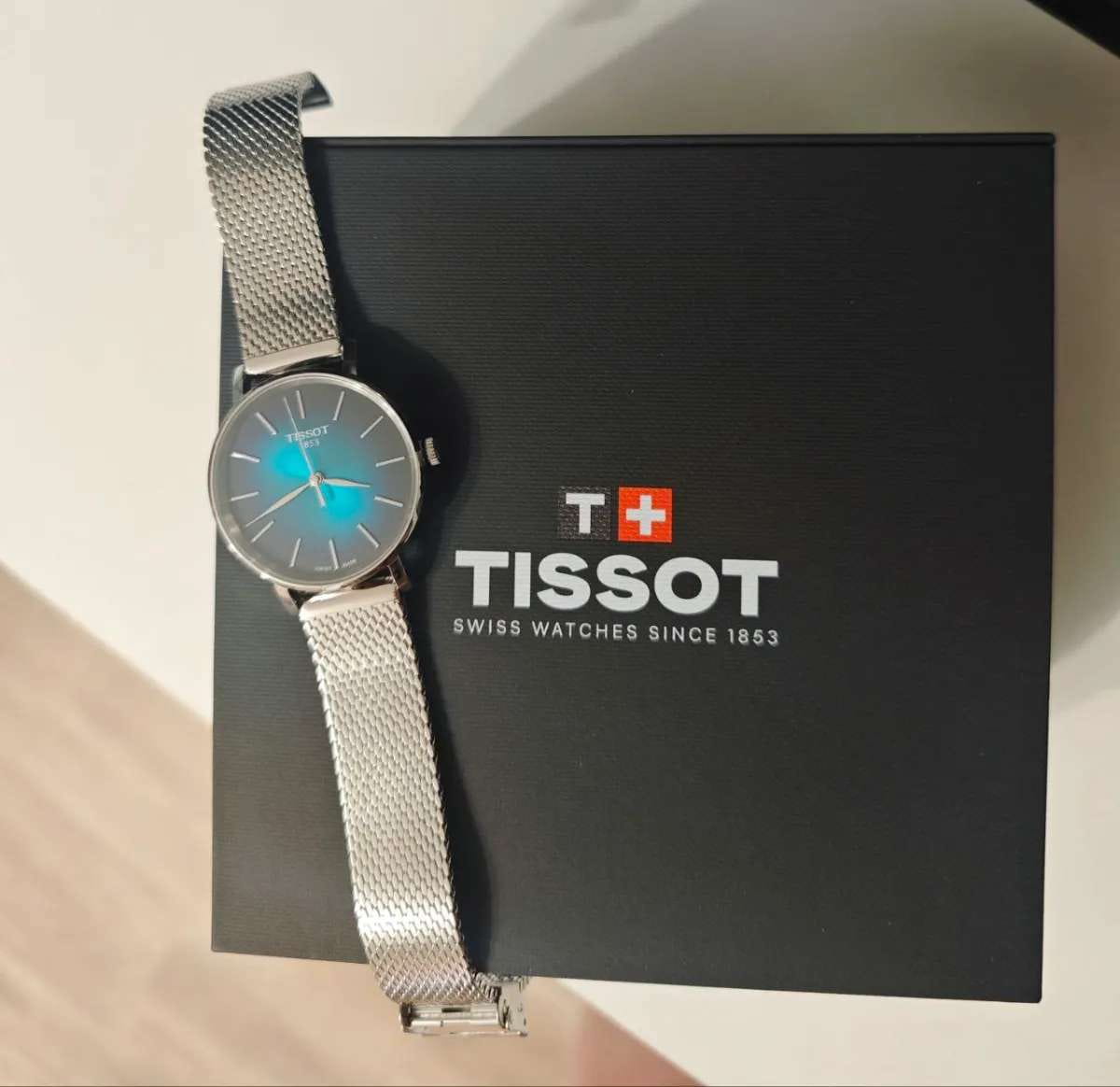 Tissot Everytime Lady T143.210.11.091.00 – элегантные женские часы, сочетающие современный дизайн и надёжность. Корпус диаметром 34 мм и толщиной 6,92 мм выполнен из нержавеющей стали 316L, обеспечивая долговечность и устойчивость к коррозии. Градиентный зелёно-чёрный циферблат придаёт модели уникальный и стильный вид, а его поверхность защищена сапфировым стекломСапфировое стеклоПрочный и надёжный материал из кристалла сапфира синтетического происхождения, характеризующийся особой твёрдостью и устойчивостью к царапинам и повреждениям., устойчивым к царапинам.