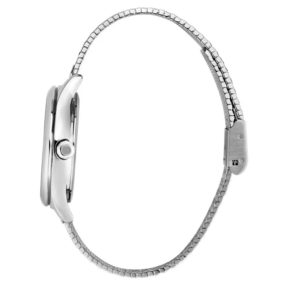 Итальянские женские часы Trussardi T-Vision R2453170505 - это стильный женский аксессуар, который сочетает элегантный дизайн и практичность. Корпус выполнен из нержавеющей стали, что обеспечивает долговечность и утончённый внешний вид. Надежное минеральное стеклоМинеральное стеклоМинеральное стекло представляет собой искусственно выращенный минерал кварца. Такое стекло отличается особой устойчивостью к повреждениям и царапинам. Уступает по некоторым качествам сапфировому стеклу. защищает циферблат от царапин и обеспечивает долговечность. Модель оснащена кварцевым механизмом, обеспечивающим высокую точность хода. Окошко даты в положении 3 часов. Браслет из нержавеющей стали с частичным IP-покрытиемIP-покрытиеМетод ионного напыления. Демонстрирует повышенную устойчивость к истиранию, окислению и химическим веществам. Под воздействием высокого давления и температуры около 1500°C молекулы металла надёжно соединяются с частицами корпуса часов. с раскладным замкомРаскладной замокДанный вариант застежки используется только на часах с металлическим браслетом. Отличительная особенность такого крепления в том, что длина браслета становится универсальной и вы можете самостоятельно отрегулировать нужный вам размер – застежка просто двигается по браслету часов. обеспечивает комфортное ношение. Стрелки и метки оснащены люминесцентным покрытиемЛюминесцентное покрытиеПозволяет считывать показания времени в темноте. Производители наносят на стрелки, часовые индексы, безель или поверхность циферблата светонакопительный состав, дающий холодное свечение., обеспечивающим отличную видимость даже при слабом освещении. Водозащита 50 метров позволит защитить корпус от случайных брызг или капель дождя. Эта модель – отличный выбор для тех, кто ищет сочетание стиля, качества и функциональности. Часы станут не только полезным аксессуаром, но и выразительным элементом вашего имиджа.