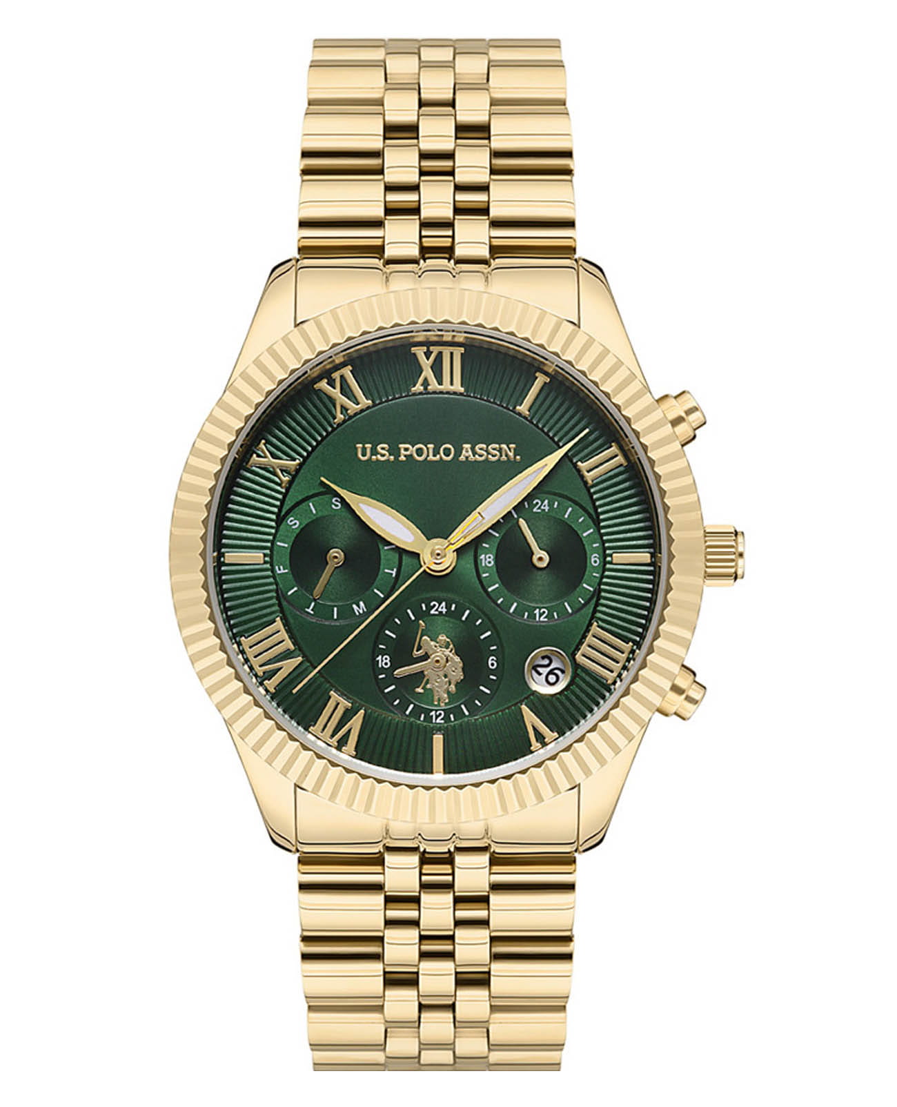 Женские часы U.S. Polo Assn. Stile USPA2040-05, кварцевый механизм с высокой точностью. Минеральное стеклоМинеральное стеклоМинеральное стекло представляет собой искусственно выращенный минерал кварца. Такое стекло отличается особой устойчивостью к повреждениям и царапинам. Уступает по некоторым качествам сапфировому стеклу. устойчивое к появлению царапин, обладающее высокой прозрачностью. Центральные часовая, минутная и секундная стрелки. Индикация даты и дня недели. 12/24х часовой формат времени. Корпус и браслет изготовлены из нержавеющей стали с IP-покрытиемIP-покрытиеМетод ионного напыления. Демонстрирует повышенную устойчивость к истиранию, окислению и химическим веществам. Под воздействием высокого давления и температуры около 1500°C молекулы металла надёжно соединяются с частицами корпуса часов.. На циферблате три дополнительных индикатора, окошко даты. Стрелки с люминесцентным покрытиемЛюминесцентное покрытиеПозволяет считывать показания времени в темноте. Производители наносят на стрелки, часовые индексы, безель или поверхность циферблата светонакопительный состав, дающий холодное свечение.. Часы украшены кристаллами. Класс водозащиты: 50 метров, позволит защитить корпус от случайных брызг или капель дождя. Стальной браслет на застёжке «бабочка» с кнопкамиЗастёжка "бабочка"Такой вид застёжки дополняется предохранителями, помогающими избежать случайного раскрытия браслета. Обладают изящным исполнением. .