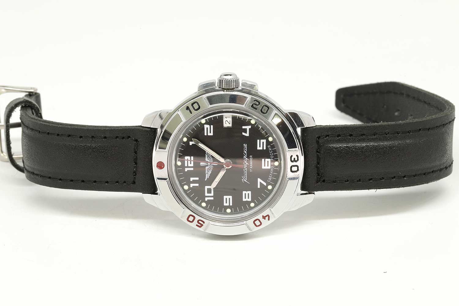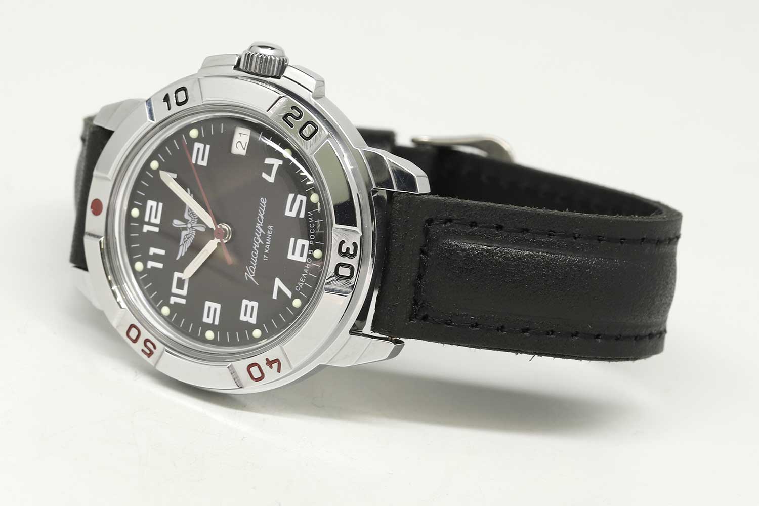 Легендарные Командирские часы с обновленным дизайном циферблата. Российские часы с историей. Командирские Классика. В механизме 17 камней. Запас хода 36 часов. Противоударное устройство оси баланса. Вращающийся безель. Завинчивающаяся заводная головка с защитой.