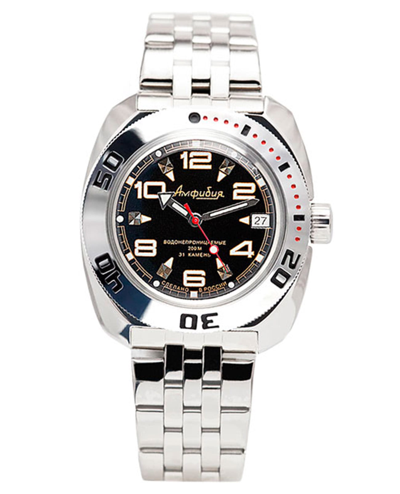 Наручные механические Часы Восток Амфибия Классика 710335 с гарантией. Механизм 2416 с автоподзаводом. Автоподзавод обеспечивает отсутствие необходимости завода наручных часов при постоянном ношении. Запас хода при полном заводе, не менее:31 час. Также есть ручной завод, можно вручную завести часы, если их не носили какое-то время до этого. Завинчивающаяся заводная головка из стали. Водозащита 200 метров, можно использовать для занятий дайвингом. Корпус изготовлен из высококачественной нержавеющий стали. Противоударное устройство оси баланса. Браслет с раскладывающейся застежкой.