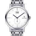 Швейцарские мужские кварцевые часы Wainer WA.01881-E с механизмом калибра Ronda 6004.B станут идеальным аксессуаром для современного джентльмена. Круглый корпус из нержавеющей стали 316L диаметром 44 мм и толщиной 10 мм защищен устойчивым к царапинам сапфировым стекломСапфировое стеклоПрочный и надёжный материал из кристалла сапфира синтетического происхождения, характеризующийся особой твёрдостью и устойчивостью к царапинам и повреждениям.. Циферблат украшен фирменным логотипом Wainer в положении 3 часа, метками в виде штрихов и тонкими заостренными прямоугольными стрелками. Окошко даты расположено в положении 12 часов, а секундная стрелка вынесена на отдельный циферблат. Рифленая заводная головка добавляет практичности модели. Часы имеют класс водозащиты 50 метров, позволит защитить корпус от случайных брызг или капель дождя. Модель комплектуется надежным стальным браслетом из нержавеющей стали 316L шириной 22 мм. Сочетание аккуратного дизайна и высококачественного швейцарского механизма делают эти часы превосходным выбором для ценителей стильных и функциональных аксессуаров.
